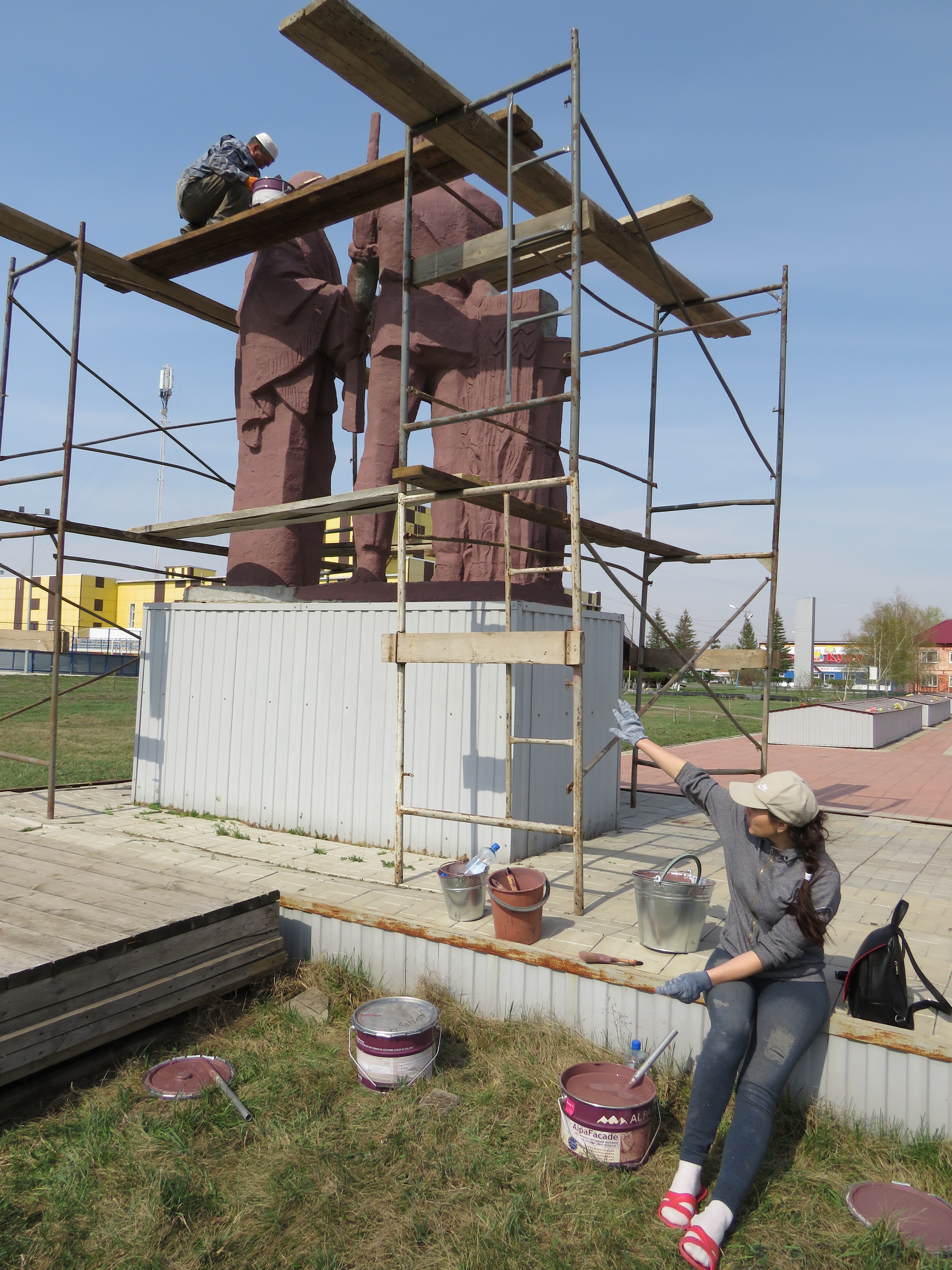 На Мемориале погибшим воинам в Одесском идёт косметический ремонт. Работники сельского поселения и известный в нашем районе скульптор Оксана Бойко грунтуют специальной защитной краской фигуры памятника. Поверх грунтовки нанесут бронзовую патину, так что привычные одесситам серебристые скульптуры будут теперь в новом цвете. В ближайшие дни планируется также частично заменить повреждённую грунтовыми водами тротуарную плитку возле памятных плит. Несмотря на запрет на проведение массовых мероприятий, к Дню Победы Мемориал будет выглядеть праздничным и обновлённым.