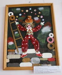 Работа 11-летней девочки признана лучшей в номинации «Художественная обработка кожи». На ее картине веселый клоун жонглирует шарами, и все детали работы выполнены из обрезков кожи.