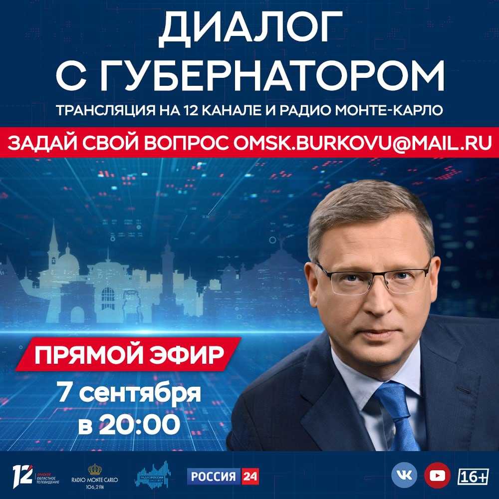 7 сентября Александр Бурков в прямом эфире 12 канала ответит на вопросы омичей