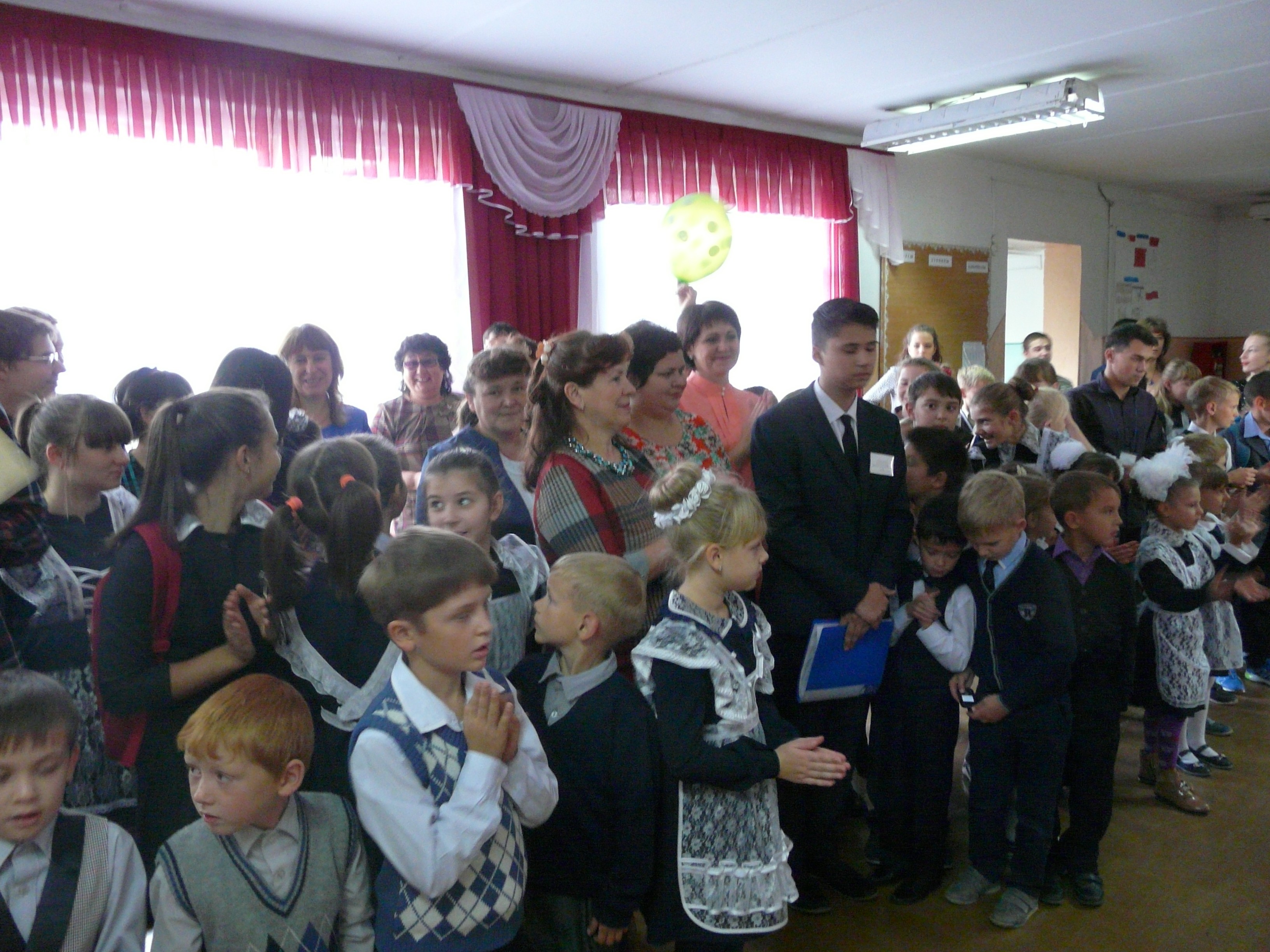Классные руководители шагнули к своим. Первоклассники жмутся к Олегу Шутько.
