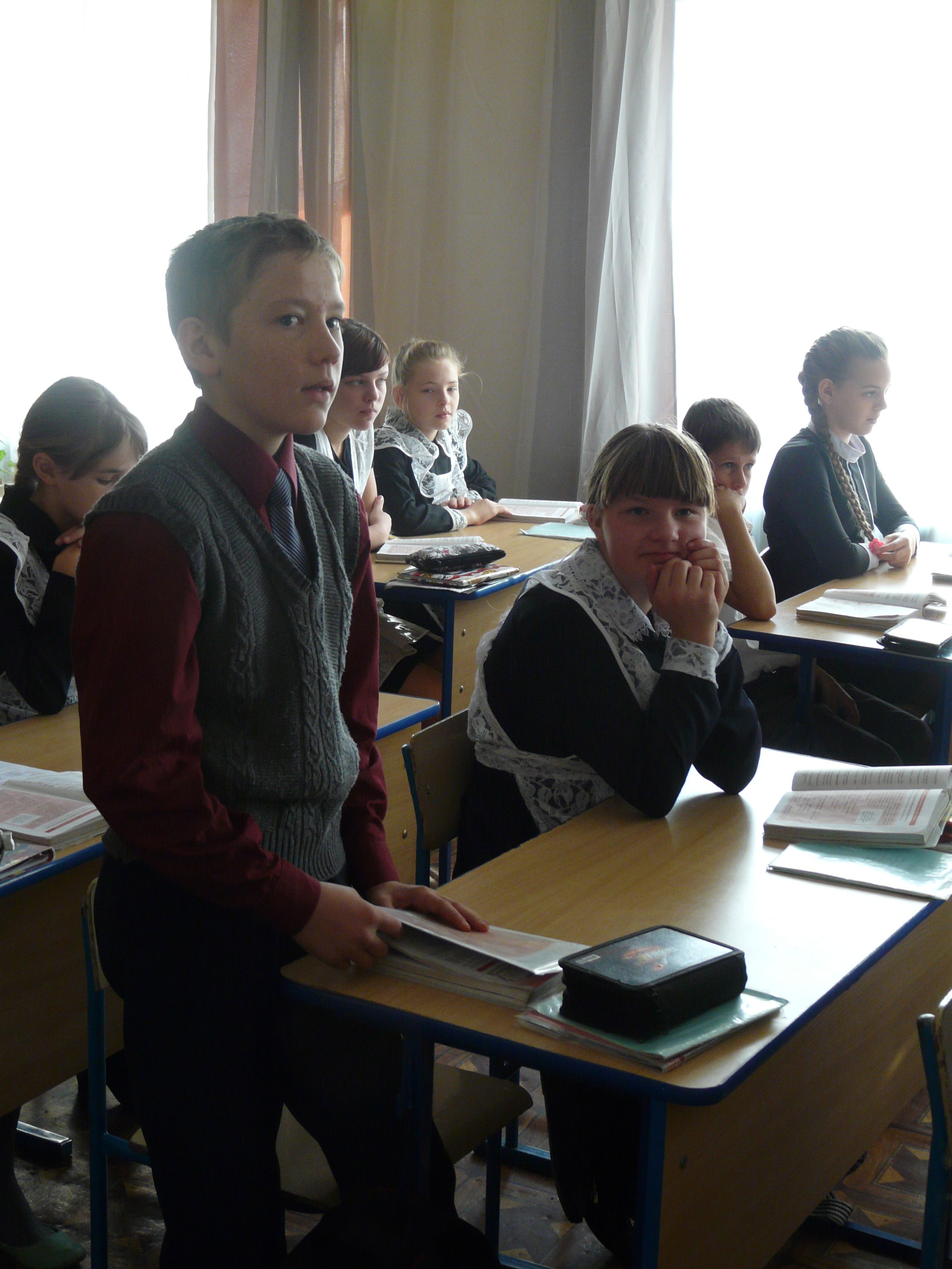 почему, правила, которые мы учили в четвертом классе, уже забылись, а слова пишешь «на автомате»). Мальчик за первой партой - Стас Яшинский, старается ответить на каждый вопрос первым, да и другие дети очень активны на уроке.
