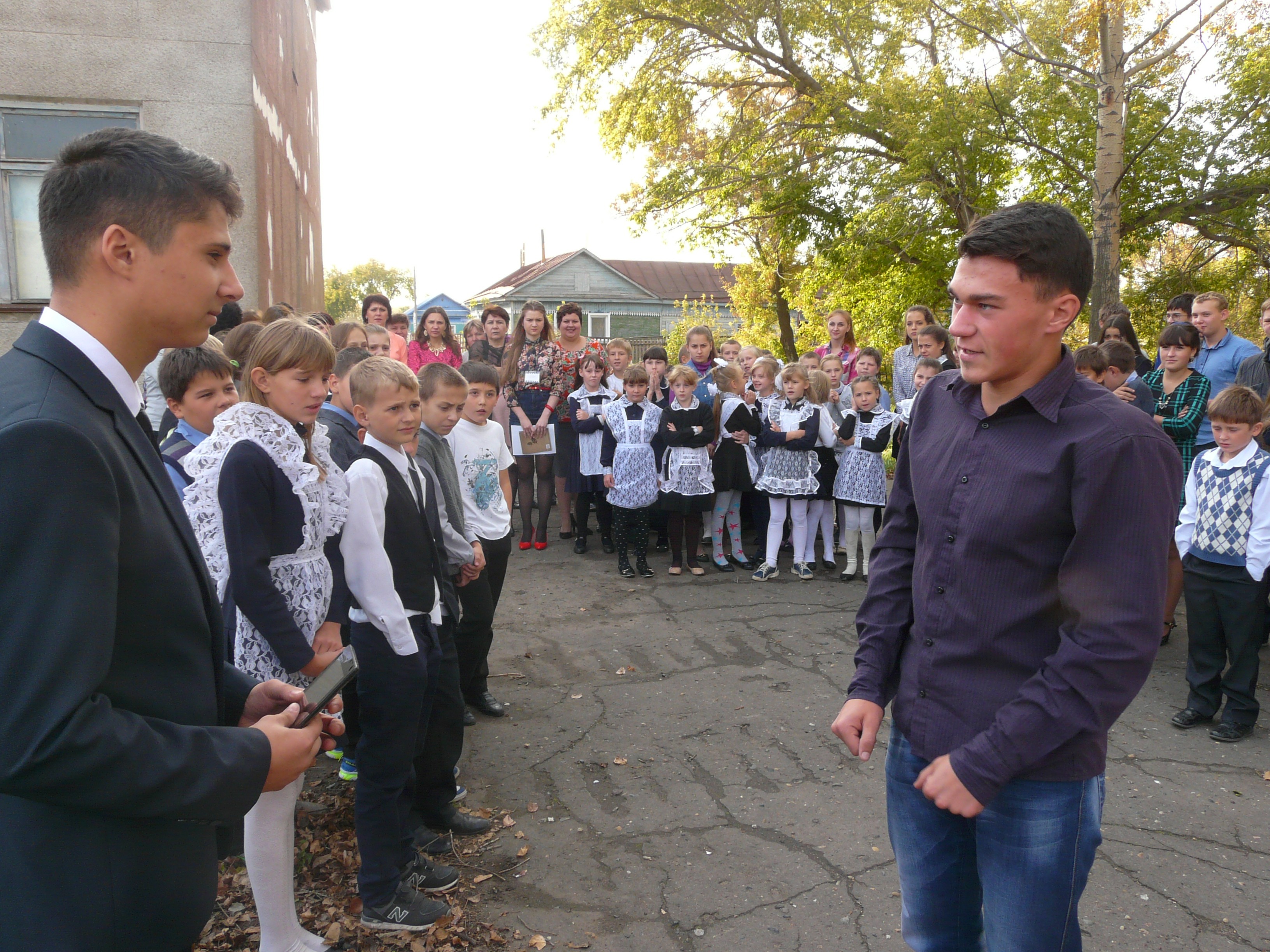 Линейка началась непринуждённо: директор Дмитрий Сумнительнов зачитал приказ и познакомил классы с их классными руководителями. Затем слово перехватили десятиклассники. Богдан Лавришинец стал разговаривать на какой-то абракадабре. Вдруг ЦРУ вспомнил. У меня ассоциации с центральным разведывательным управлением в США, а у него это –