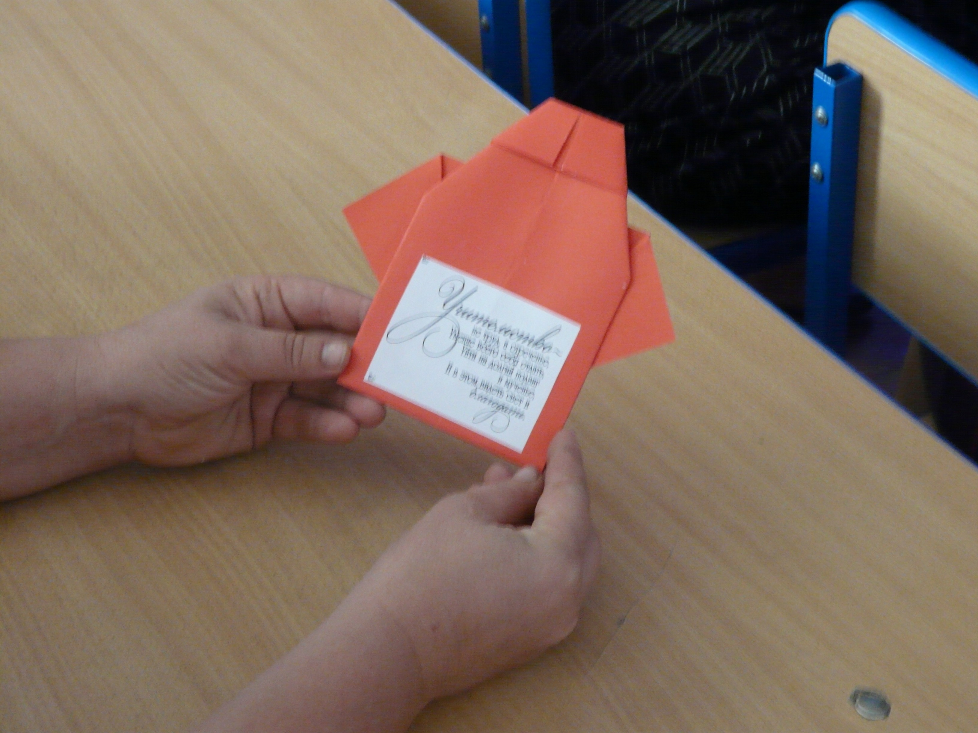 Отличница Валя и в этот день была на высоте. Оказывается, до того, как объявили тревогу, она погрузила своих учеников в атмосферу 90-х. Вспомнили политиков и первого президента Бориса Ельцина, творчество Виктора Цоя. Самые интересные моменты и приметы времени в вопросах викторины с мультимедийным сопровождением растрогали учителей. Но это был ещё не последний сюрприз. Девушка запаслась пожеланиями: записочки с изречениями китайских философов были завернуты в съедобные конвертики, пахнущие ванилином. Свой конвертик я с удовольствием съела (Валя, дайте рецепт!), а пожелание спрятала на память. Учительница сказала, что оно обязательно сбудется, а я с детства привыкла доверять учителям. Оно гласило: «Дорога в тысячу миль начинается с первого шага». Наверное, у меня будет другая работа,- подумала я.