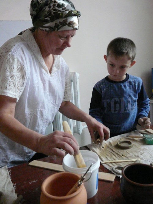 Михайловна. - Потом оборудовали под занятия летнюю кухню, но теперь там стало холодно. Хотели на улице Куйбышева купить домик - там три комнаты, хватило бы места деткам трудиться, играть и отдыхать. Думали теплый пол сделать. Но денег нет, пришлось от идеи отказаться. Редактор газеты позвала к себе - нам ведь надо, чтоб тепло было, вода… Теперь планируем перенести гончарное оборудование в подвал собственного дома. Весь ручной инструмент для занятий у нас есть, заказаны гончарная печь, круги, турнетки. Изделия готовим на месте, а обжигать возим в Омск, за одно изделие отдаем 100 рублей да плюс дорога…