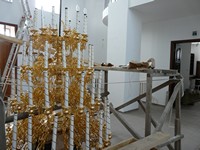 Самое впечатляющее - центральное паникадило, которое будет висеть под куполом храма. Его высота - 3, 20 метра, диаметр - 1,60 метра, а вес - 300 килограммов. Сейчас трехъярусное паникадило собирают Владимир Валерьевич Ковбаса и Сергей Иванович Туров.