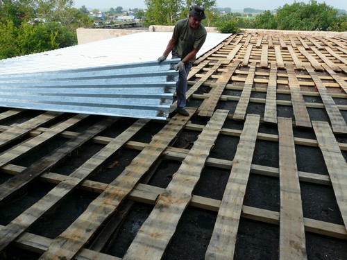- Брус под настилом должен быть 5Х15, а стоит 5Х10, вернее, лежит плашмя. Брус должен стоять на ребре. И у кровли не было наклона, чтобы стекала вода, были неправильно уложены листы настила, поэтому вода собиралась и стекала внутрь.