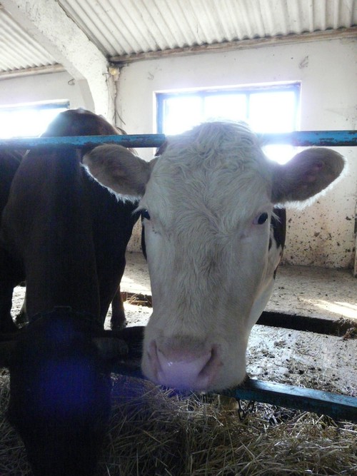 яблоках, лошадь. Телята находятся на естественном подсосе. Владимир Михайлович с гордостью рассказывает об устойчивой к болезням, породе мясного направления - казахской белоголовой: