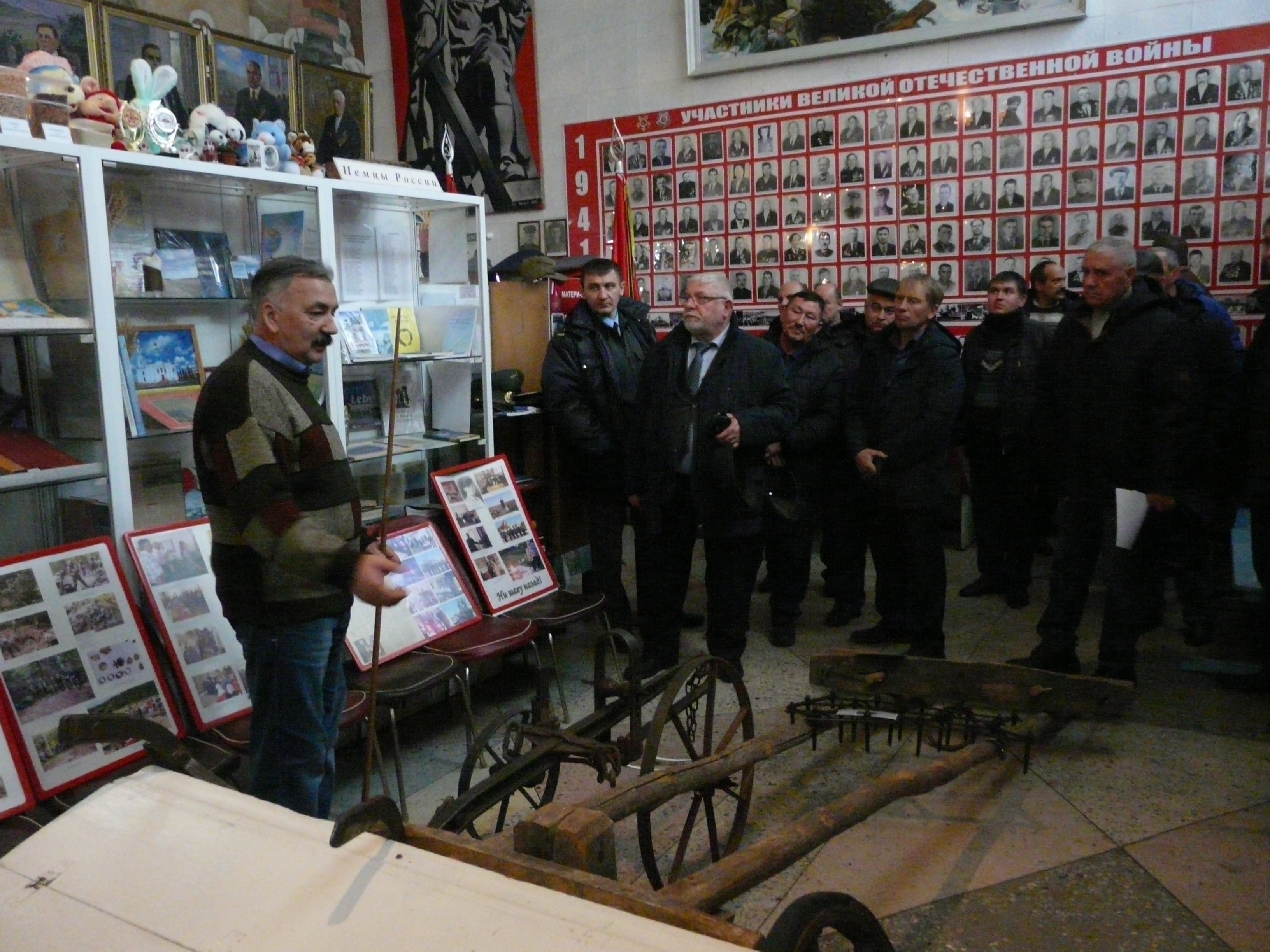 На снимке: участники районного семинара по хранению техники в Желанновском музее. Совещание по хранению техники организаторы - руководство "Агрохолдинга "Сибирь" - спланировало провести в зале Центра культуры и досуга, пригласив своих гостей посетить и музей культуры, истории и быта, который удивил многих фермеров обилием экспонатов, бережно хранимых долгие годы.