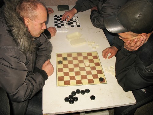 На шашечных полях было жарко, а в спортивном центре - холодно, так что игроки не снимали верхнюю одежду.