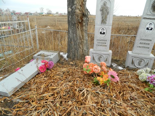 Многие люди уже на следующий день поправили могилы близких. А некоторые памятники так и лежат поверженные - "лицом вниз". Кто-то еще, судя по всему, не успел к ним приехать.
