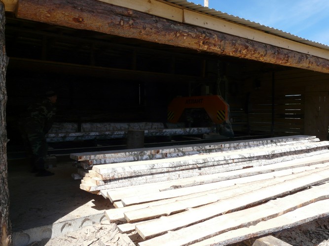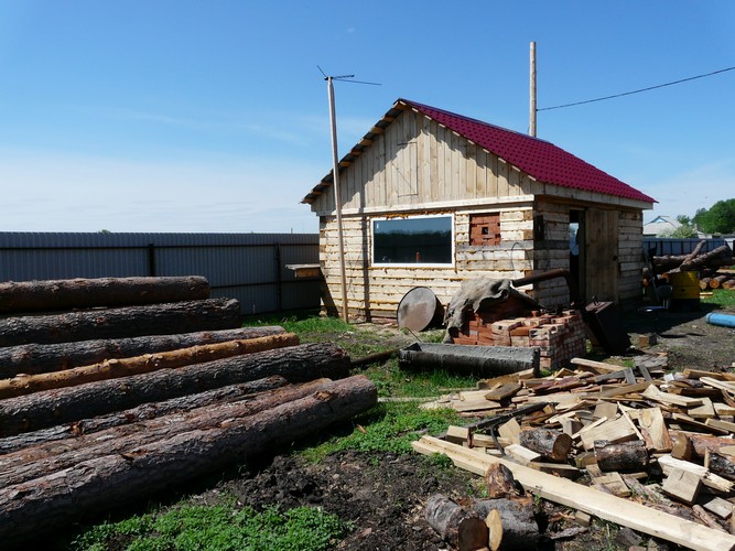 Самостоятельно, правда, по разрешению хозяина, побродила по обширной территории Качиных, которые рядом с производственными зданиями начали строить двухэтажный дом. Территория огорожена, здесь же стоит и техника - "МАЗ", "Газель", трактор. О лесоперерабатывающем бизнесе говорят ряды бревен и негромкое жужжание пилы - это работает ленточный станок "Атлант".