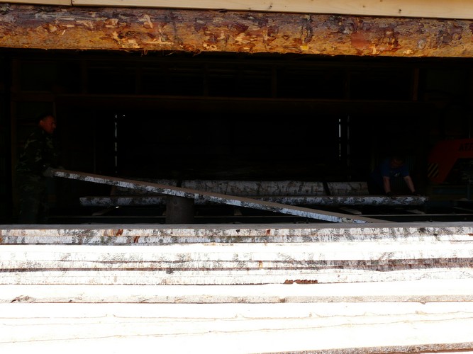 Опытный распиловщик сразу оценит, на что выгоднее пустить дерево, как его лучше распилить. Сейчас у Качиных проходят стажировку двое сельчан - Дмитрий Науменко и Сергей Зубчевский, учит их премудростям "деревянных дел" Владимир, который за долгое время, которое он занимался доставкой леса и пиломатериалов, обучился распиловке и изрядно поднаторел в своем деле.