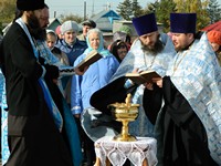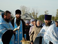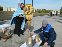 Так и есть. Настоятель Крестовоздвиженского храма города Омска протоиерей Олег, секретарь Омской и Таврической епархии протоиерей Сергий и настоятель храма Троицы города Омска иерей Илья приехали в этот день, чтобы отслужить молебен на освящение колоколов.