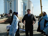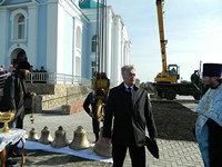- Сегодня у нас без преувеличения - событие районного масштаба, - сказал Валерий Николаевич. - Десять лет прошло с того времени, когда в селе Одесском началось строительство Храма. Срок немалый. Надо признать, что при его воздвижении возникало немало больших и малых проблем. Многие из них решались при вашей непосредственной помощи, при желании не только жителей Одесского, но и жителей всего нашего района. А желание у всех при этом было общее и благое: как можно скорее завершить строительство Храма. Сегодня уже можно смело сказать о том, что с поднятием колоколов поставлен один из последних штрихов в этом великом деле. О том, что совсем скоро колокольный звон возвестит о том, что у нас есть свой Храм, куда может прийти любой желающий. Я уверен, что с ним и с Божьей помощью мы станем жить и лучше, и чище - во всех отношениях. От души поздравляю вас с этим событием.