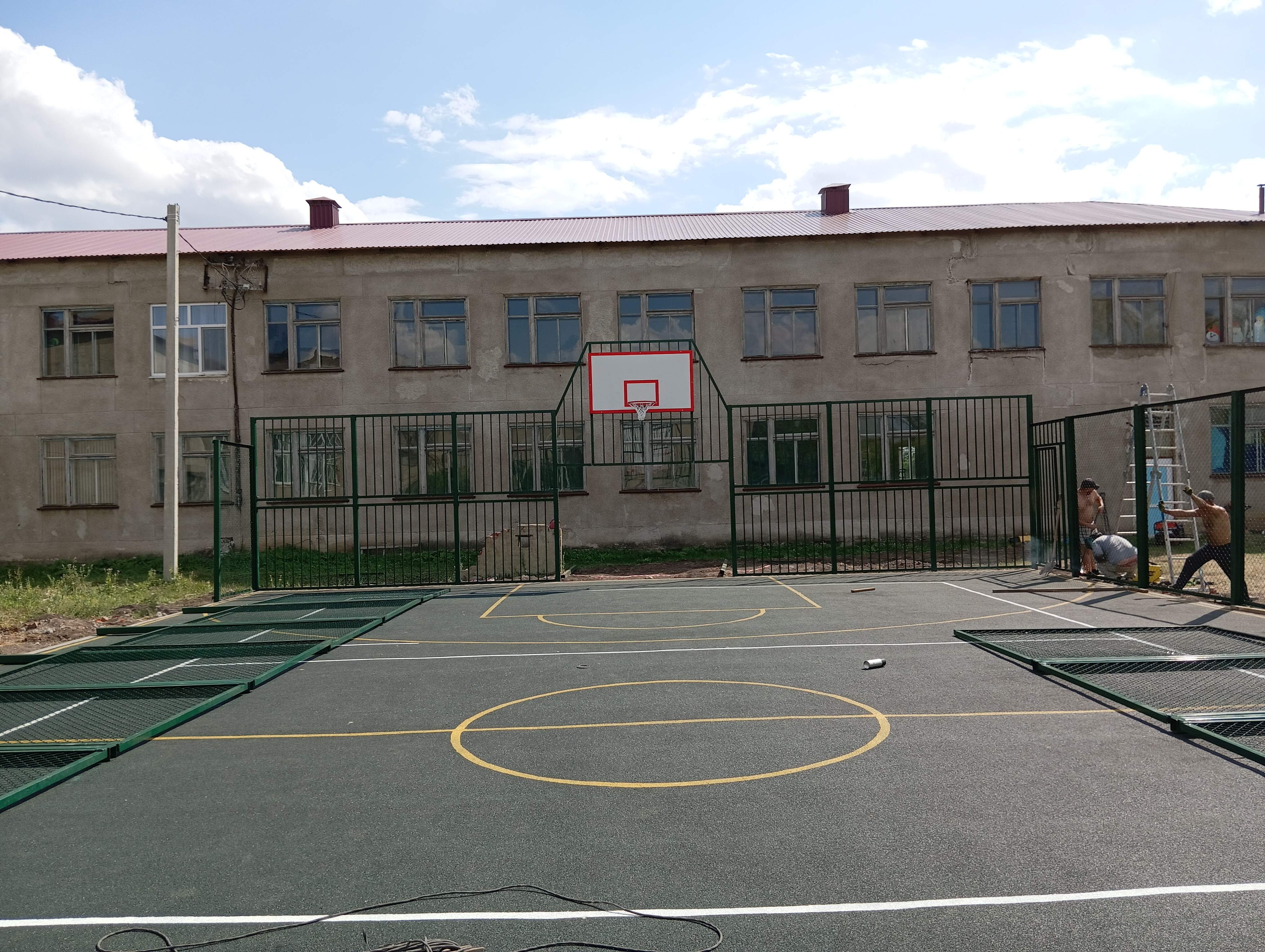 Мы побывали на площадке в день, когда строители монтировали ограждение. Ажурные 3D-решётки зелёного цвета в три метра высотой нисколько не портят вид. Проект уникальный, потому что здесь можно играть и в волейбол, и в баскетбол, и в мини-футбол. Изюминка площадки в том, что ворота для мини-футбола не отнимают места - они выходят за края площадки.