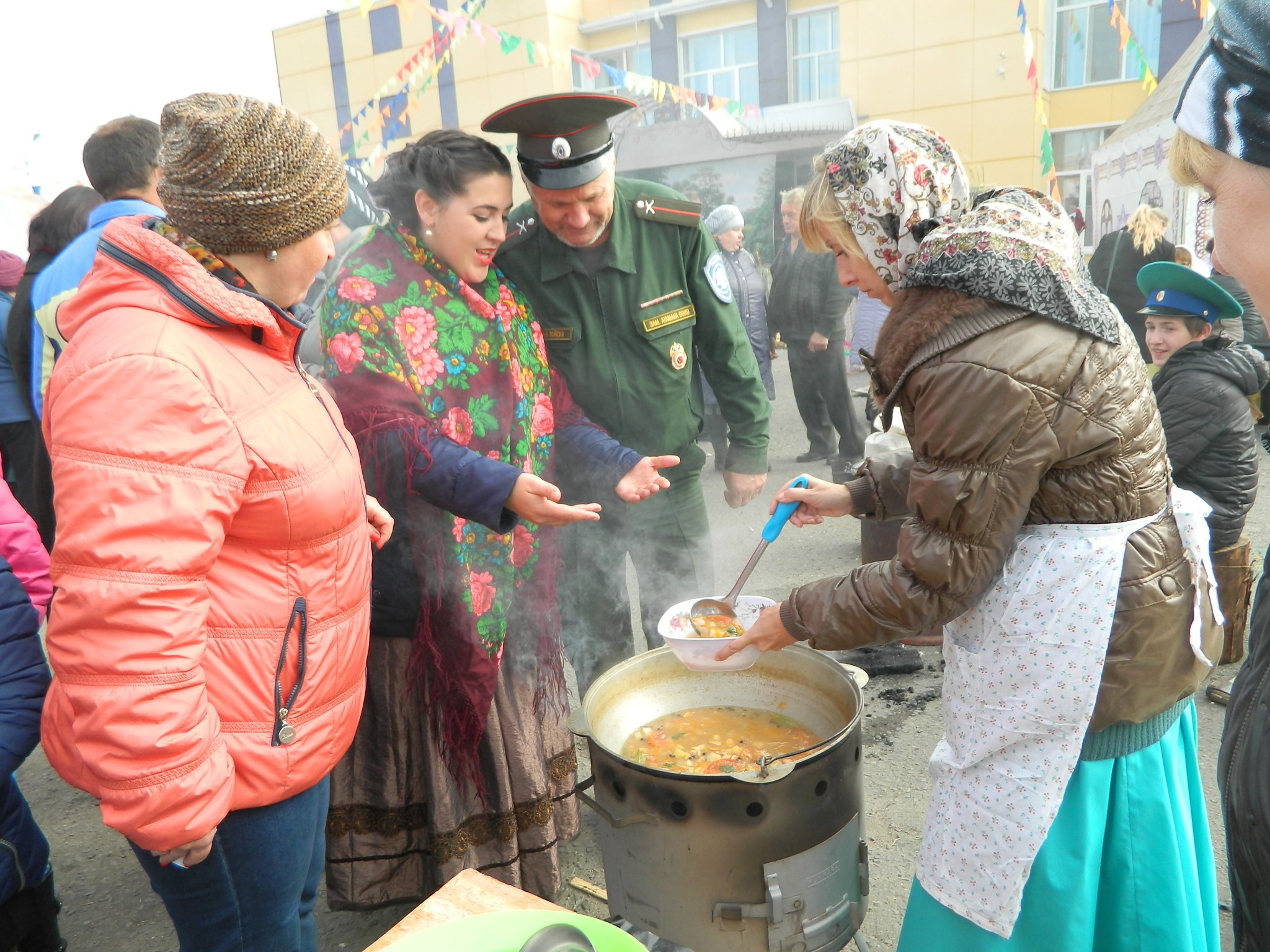 На площади районного Дома культуры в рамках первого районного фестиваля «Казачья уха» с размахом и щедрым гостеприимством прошёл праздник казачьей национальной культуры