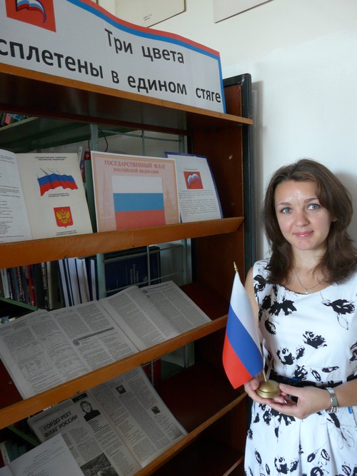 Библиотекарь центра правовой информации Юлия Александровна Новик из районной библиотеки подготовила книжную выставку. Здесь вам предложат материалы по истории флага, официальные документы, а также статьи из газет и журналов.