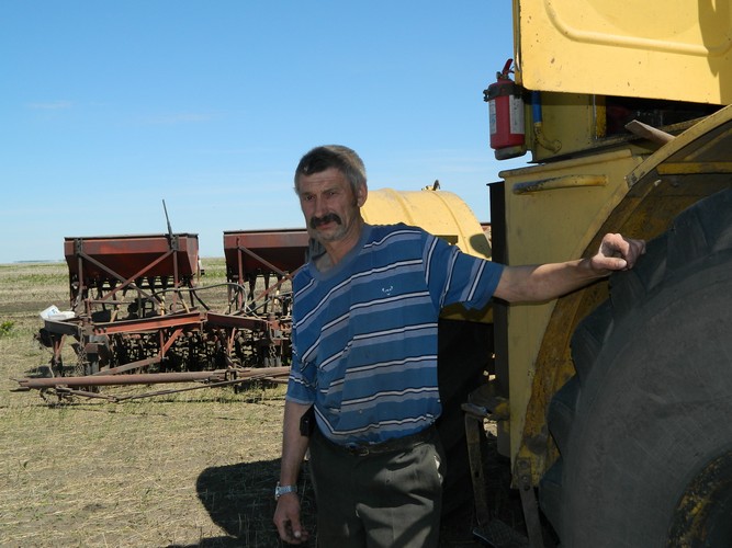 - И до 150 гектаров, бывало, успевали, - говорит Владимир Иванович. - Роман Николаевич Мартынюк у нас работает недавно, пока на "Т-150", но недавно получил новое удостоверение, и теперь будет работать уже на новом "К-700". Переехал из села Орехово, жилье ему я предоставил. Агроном у нас теперь свой в коллективе - Анатолий Геннадьевич Некрасов. В посевную он еще и учетчик, и обеды развозит. На "КамАЗе" трудится водитель Н.С. Паршуткин, засыпщиками семян - В.Б. Капелюшный, В.В. Проценко, на "Беларусе" - В.Н. Леонтюк. К слову, опытный механизатор Василий Николаевич Леонтюк в прошлом году вышел на заслуженный отдых, но коллектив не оставил, продолжает трудиться. О каждом из них могу сказать только хорошее: люди работают профессионально и с большой отдачей.
