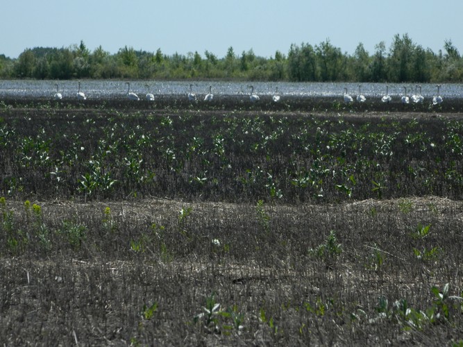 После снежной зимы, а затем и обильных осадков этой весной на полях часто встречаются лощины с водой, издали напоминающие озера. Прошел слух, что рядом с Брезицком на них часто садятся стаи .. лебедей.