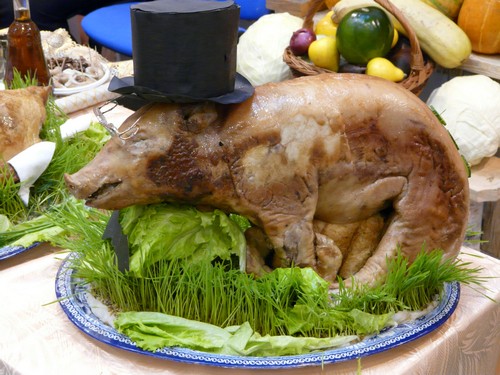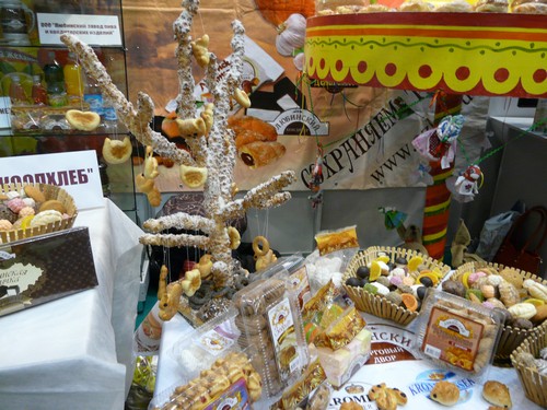 Плетеные лошади, большие куклы, шикарные многоярусные стенды с овощами, хлебные деревья и, конечно же, продукция от собственных производителей привлекали внимание горожан. Неоднократно они обходили чудо-ряды, чтобы вновь и вновь угоститься и колбасными изделиями Лукьяновско-Пуровского мясоперерабатывающего предприятия, и сырами побочинского производства. Отмечали отличные вкусовые качества, расспрашивали, где это все можно купить. Запах привлек даже медведя, который свободно разгуливал по выставке и остановился у столиков одесситов.