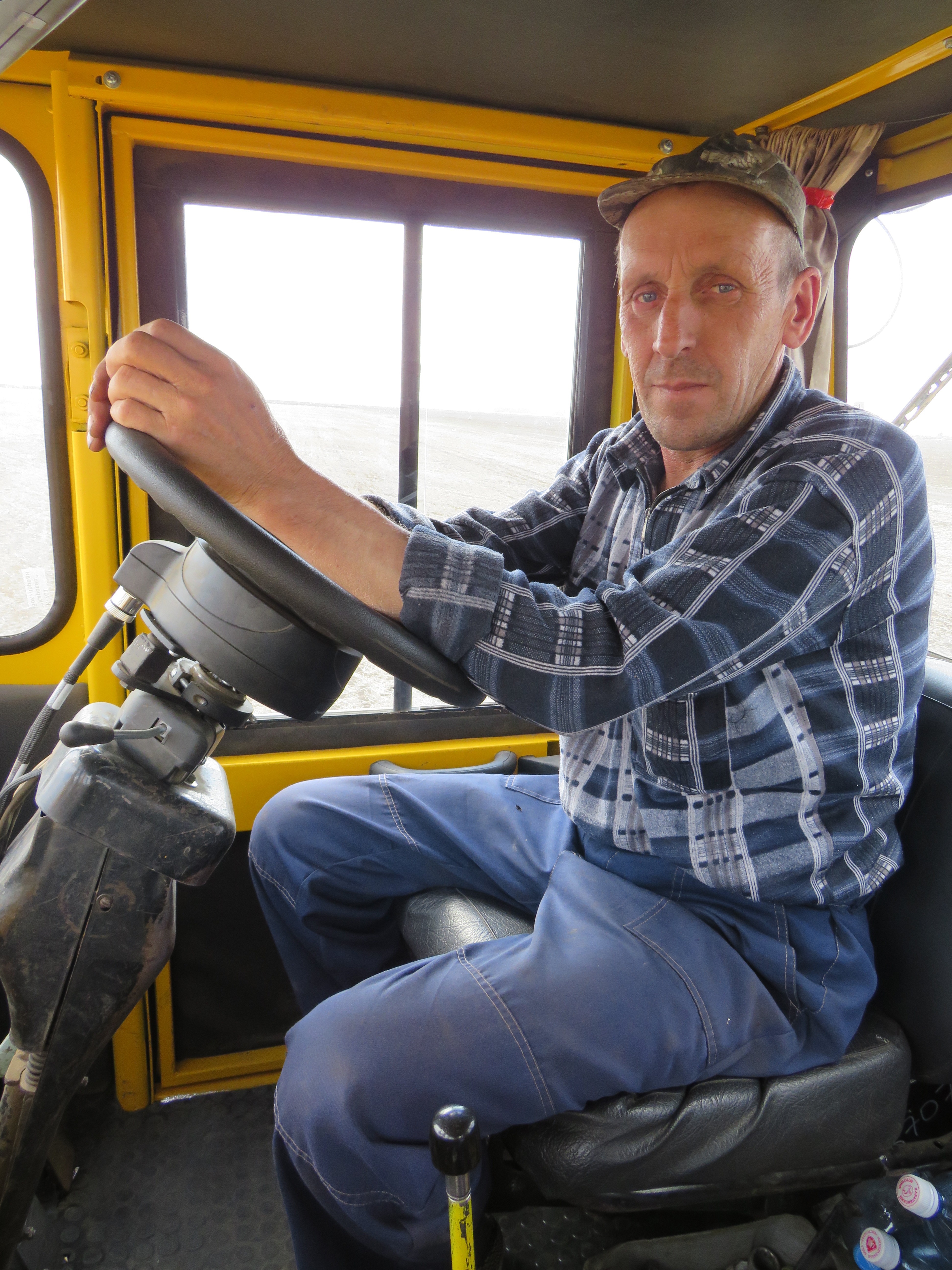 - Здесь кондиционера нет, вместо него открытые окна, - объясняет Сергей Шмигирин, - это напарника Александра Кузенко трактор, он в ночь работает. Много времени на засыпку уходит, так что выработка небольшая. На этом поле лён сеем, два поля засеяли уже. Если будете про настроение спрашивать, то не очень оно. Хотелось бы зарплату побольше, а её подняли всего на семь процентов, это совсем немного, вот и грустно.