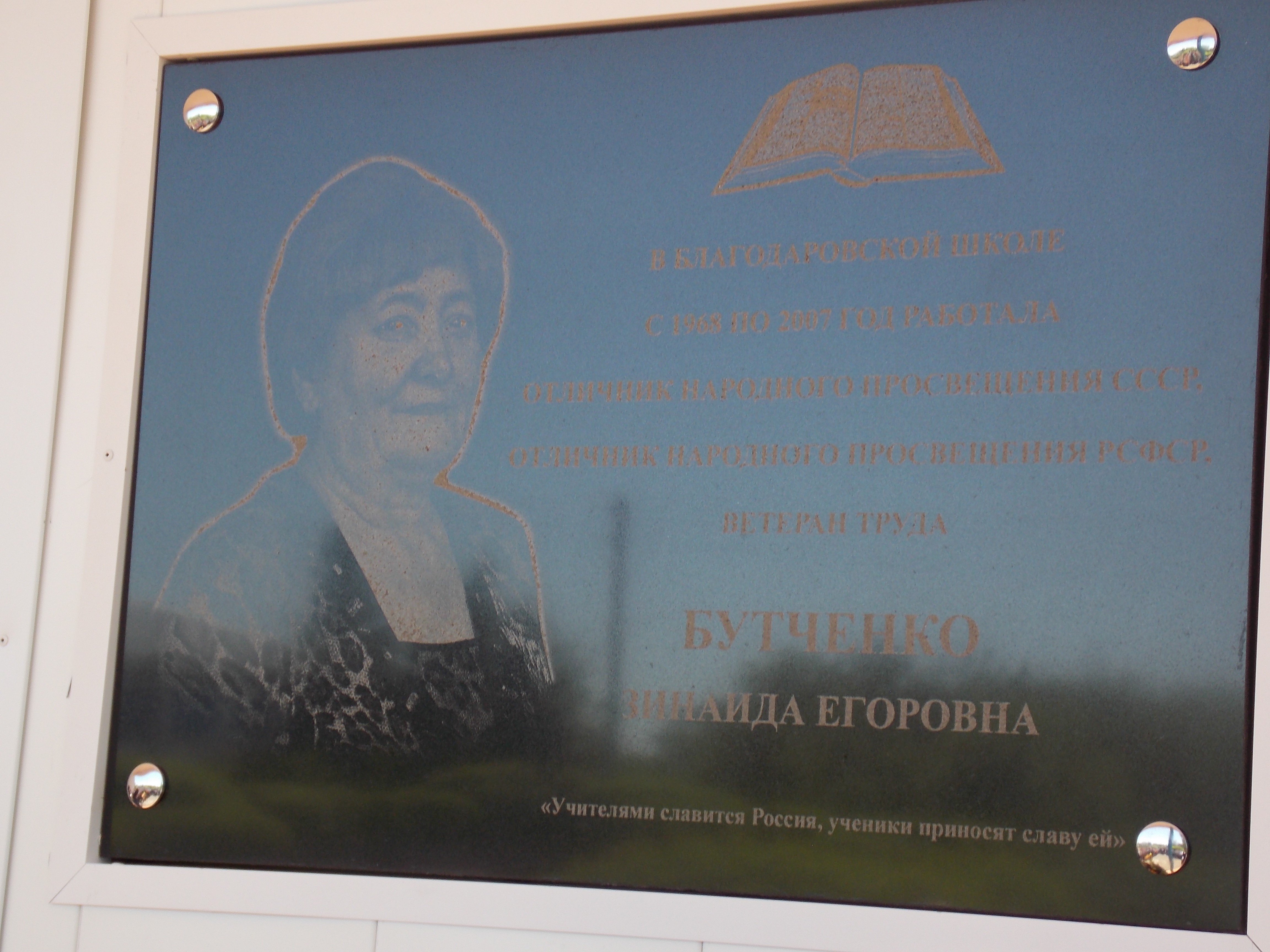 На здании Благодаровской школы торжественно, в присутствии жителей села и родных, открыли мемориальную Доску учителю школы Бутченко Зинаиде Егоровне.