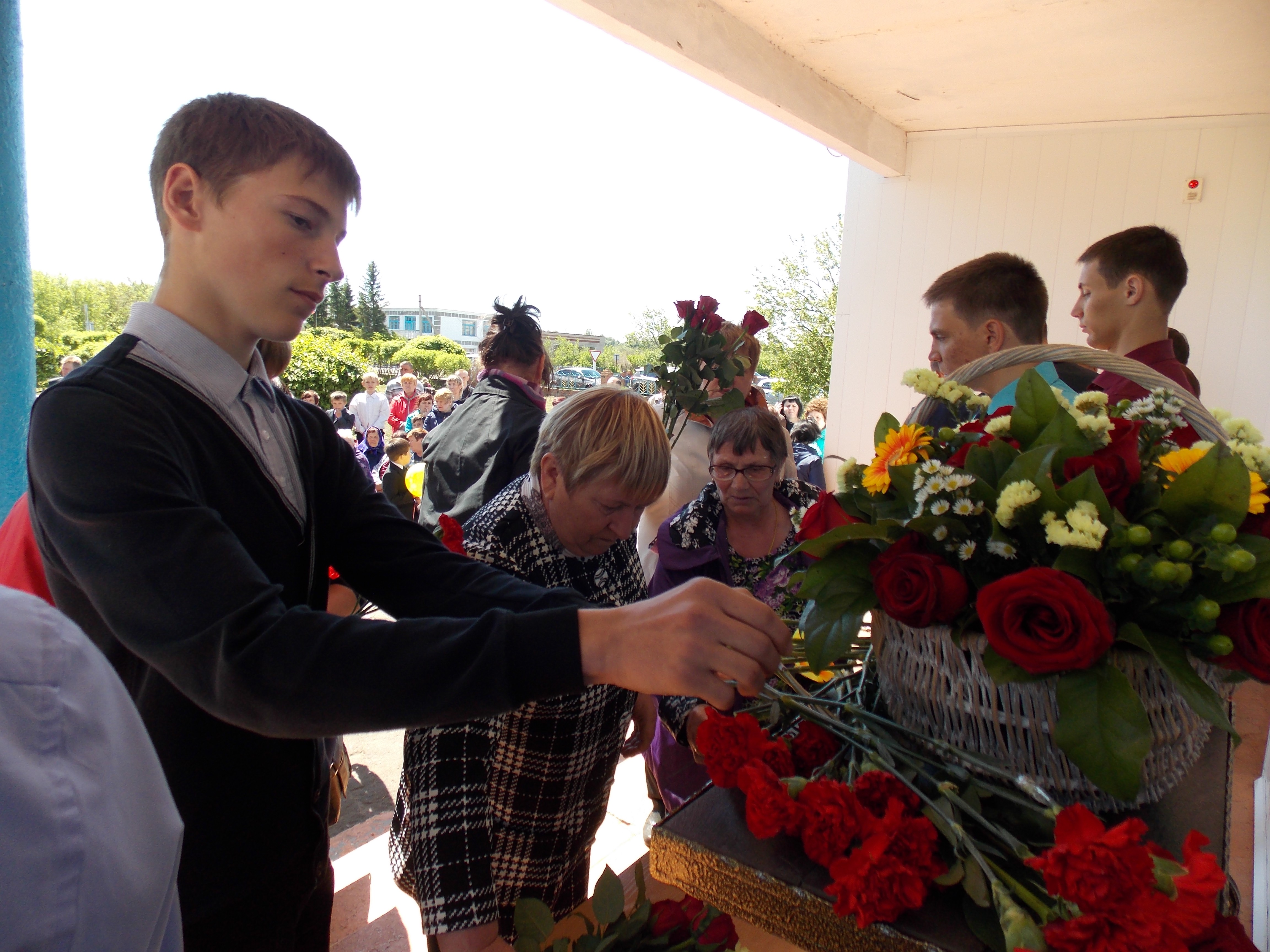 Право снять покрывало и открыть мемориальную Доску предоставили родным педагога, директору школы, главе района. Корзина цветов у Доски, как символ того, что школьная жизнь педагога продолжается. И ещё много раз ей смогут принести цветы ученики.