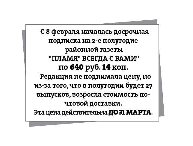 Началась досрочная подписка на газету ПЛАМЯ ВСЕГДА С ВАМИ Одесского района