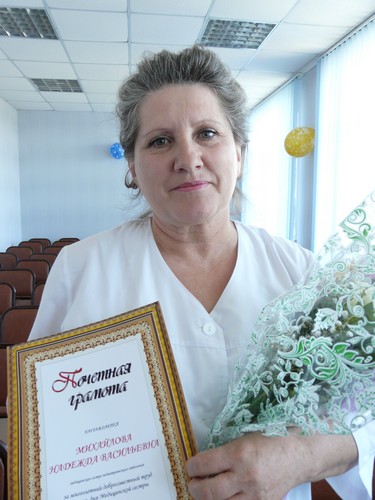 Грамоты и букеты хризантем получили те, для кого чужой боли не бывает: медсестра отделения реанимации Н.В. Щербань, палатная медсестра хирургического отделения Н.В. Гольман, медсестра палаты патологии акушерского отделения Е.В. Смирнова, медсестра педиатрического отделения Н.В. Михайлова.