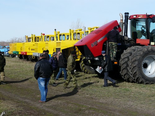 На техническом осмотре благодаровцы и на этот раз выделились: свежей краской блестели почти все тракторы, а желтые «К-700», выстроившись в ряд, напоминали раскрашенные пасхальные яйца. Чтобы как-то отличаться в поле друг от друга, механизаторы, по предложению бригадира А.И. Литвиненко, выкрасили бамперы в разные цвета. Голубой, серый, красный, желтый, зеленый, черный, - они вызывали улыбку у членов комиссии по техническому осмотру.