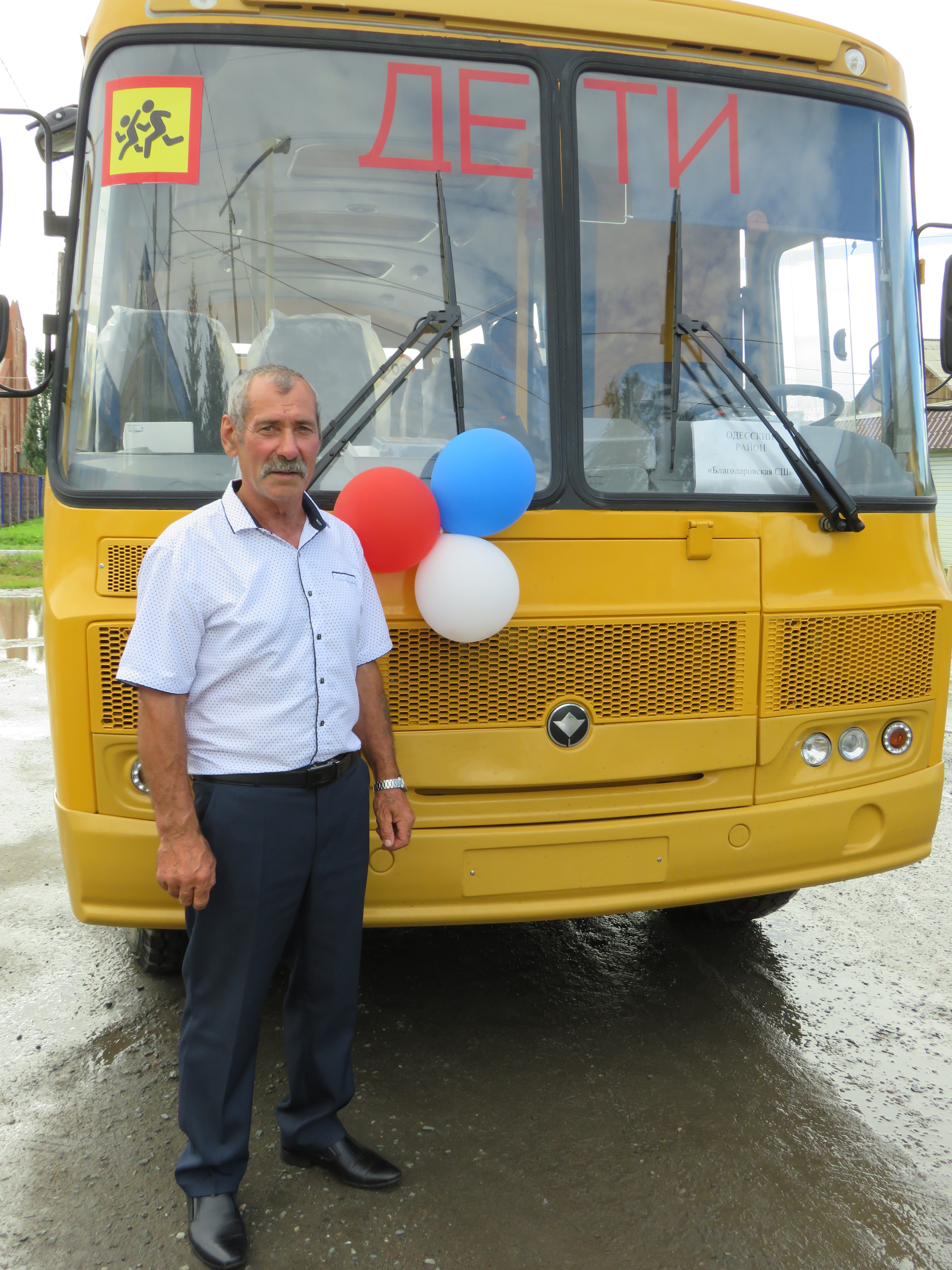 Так отозвался о недавно полученной технике водитель Благодаровской школы Владимир Алексеевич Майер. Новенький жёлтый «ПАЗ» он вместе с директором школы Владимиром Николаевичем Волоским забрал из Омска 10 августа.