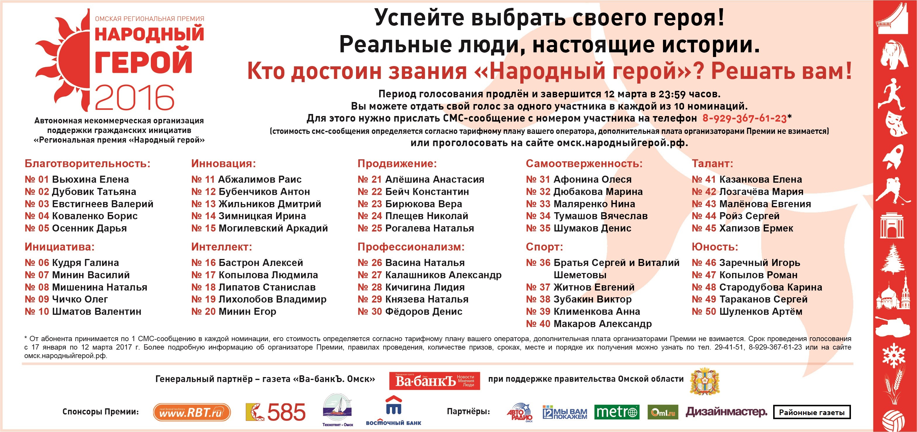 По многочисленным просьбам омичей голосование за народных героев продлено до 12 марта!