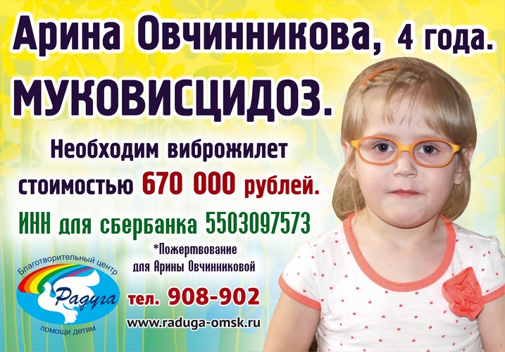 Узнать, как помочь Арине, можно на сайте БЦ «Радуга» raduga-omsk.ru, а также по телефону 908-902.