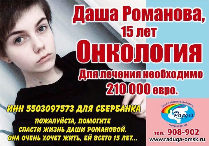 Так что говорим просто: пожалуйста, помогите спасти жизнь Даши Романовой. Она очень хочет жить, ей всего 15 лет...