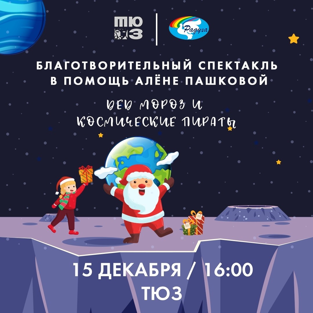 Театр юного зрителя и Благотворительный центр помощи детям «Радуга приглашают маленьких омичей и их родителей 15 декабря в 16 часов на благотворительный спектакль «Дед мороз и космические пираты». Все собранные средства пойдут на поддержку Алены Пашковой.