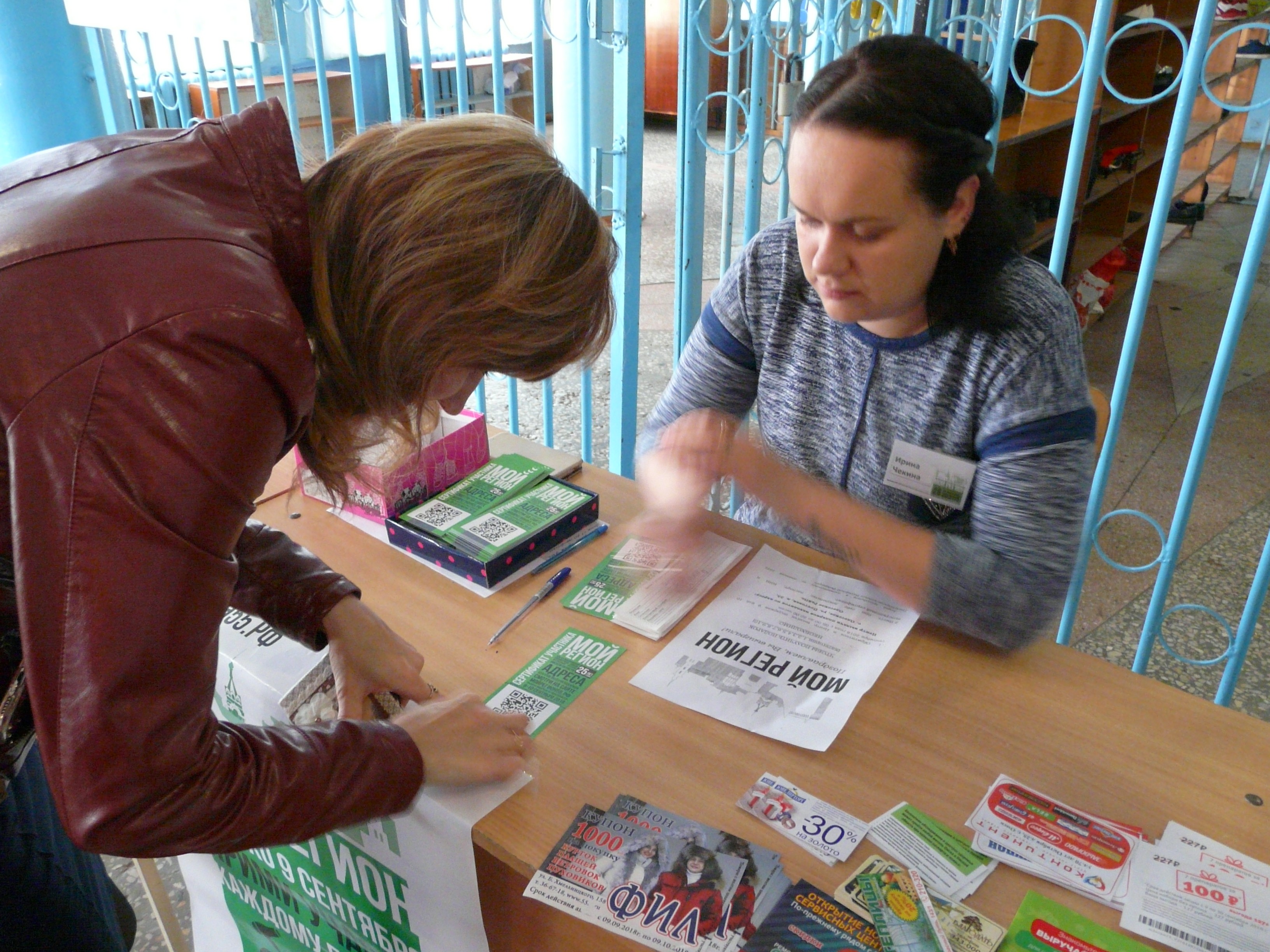 бюллетенями. Некоторые, открыв цифру 11, тут же выбирают понравившийся скидочный купон, а самые счастливые, увидев другую цифру на своём флаере, идут в центр выдачи подарков.