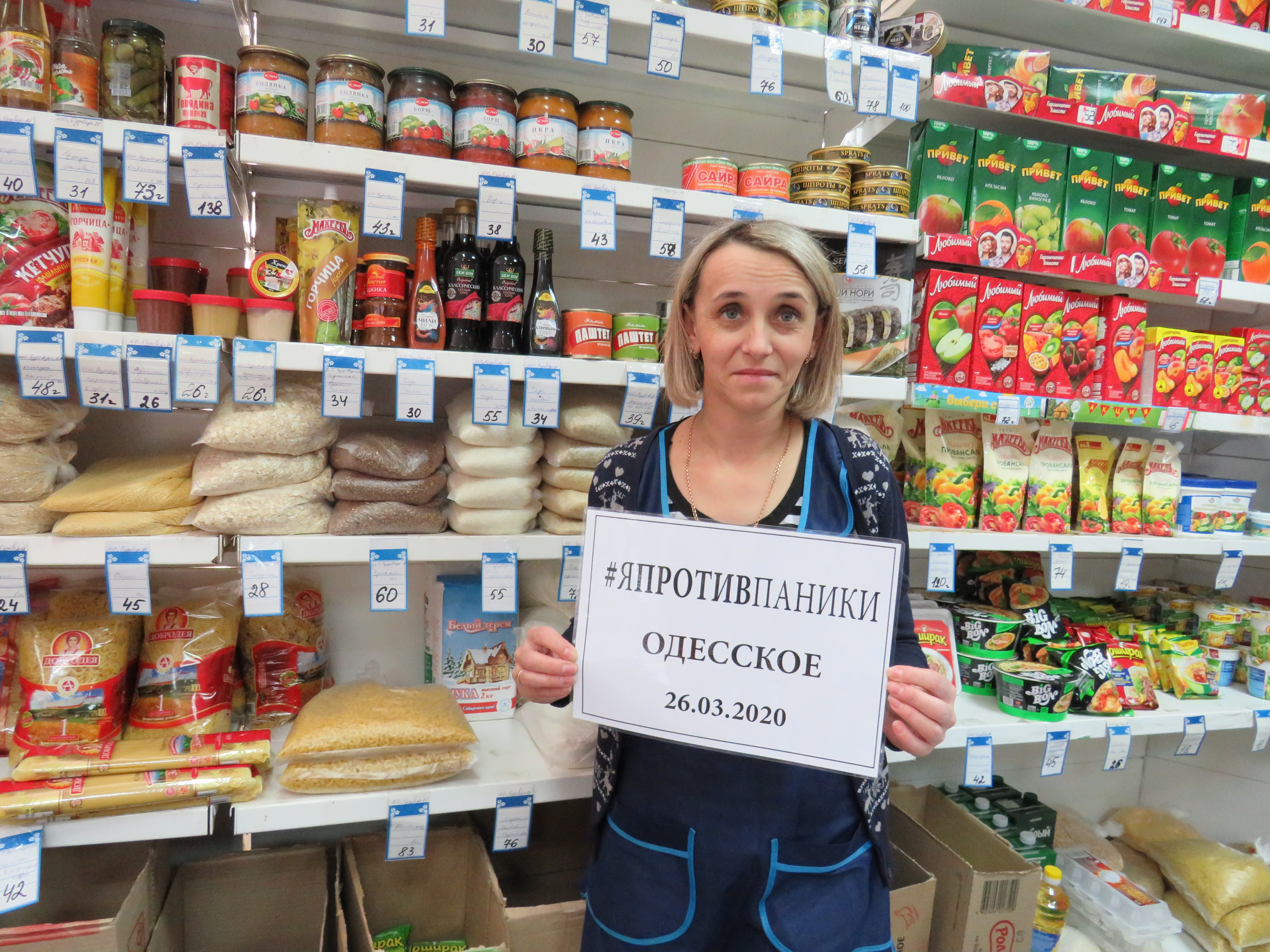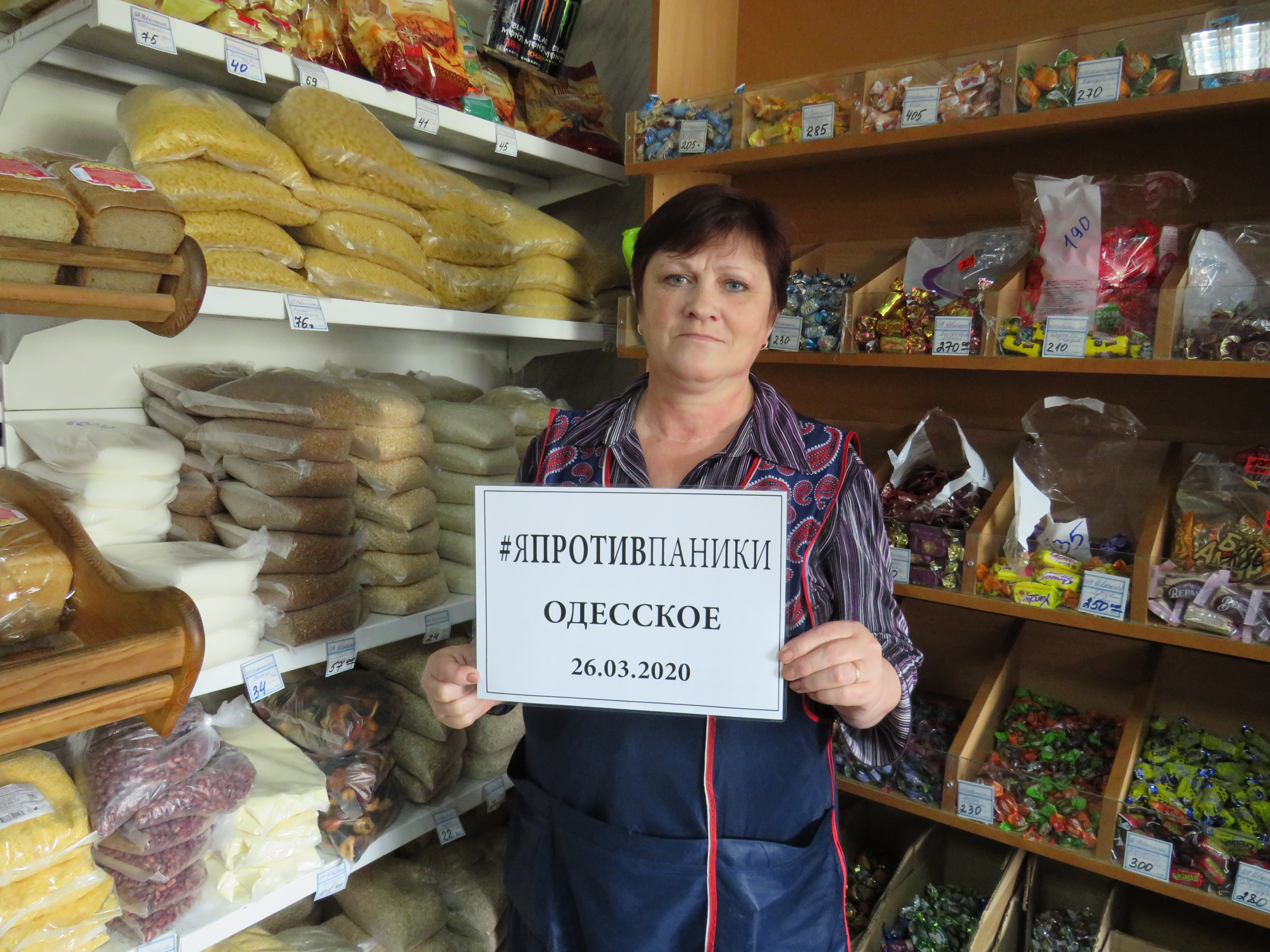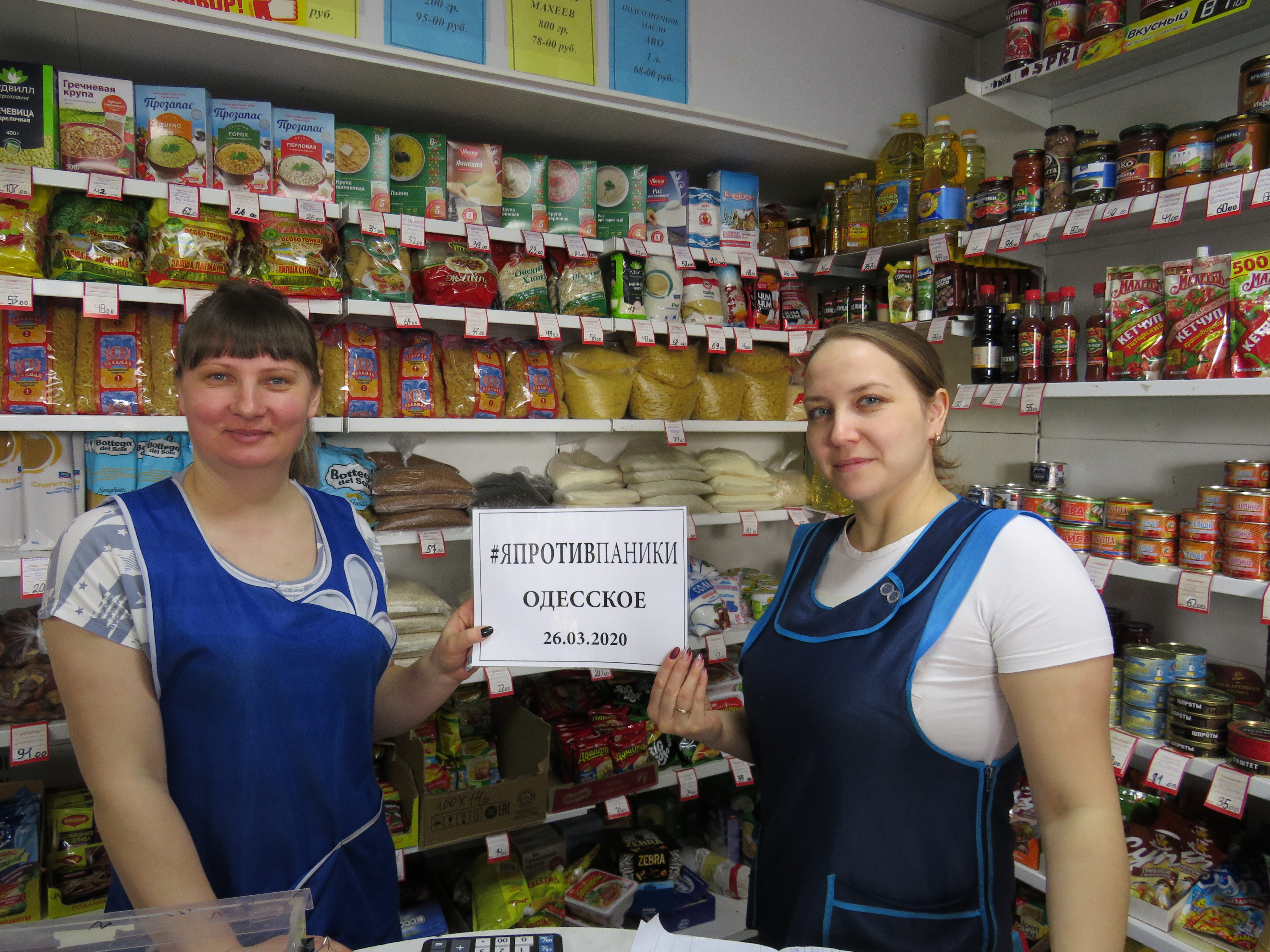 Одесситы присоединились к флешмобу в соцсетях #япротивпаники. Редактор газеты «Пламя» всегда с вами» Марина Губенко обошла магазины райцентра и удостоверилась, что продуктов в них в избытке. Особое внимание наш редактор уделила гречке – эта крупа в любых непонятных ситуациях обычно пропадает с прилавков первой. О результатах этого рейда читайте в свежем выпуске «районки». А пока смотрите фото одесситок, которые панике не поддаются, – это Анастасия Зайцева, Нина Помракова, Валентина Касьяненко, Нина Ларионова, Наташа Ершова.