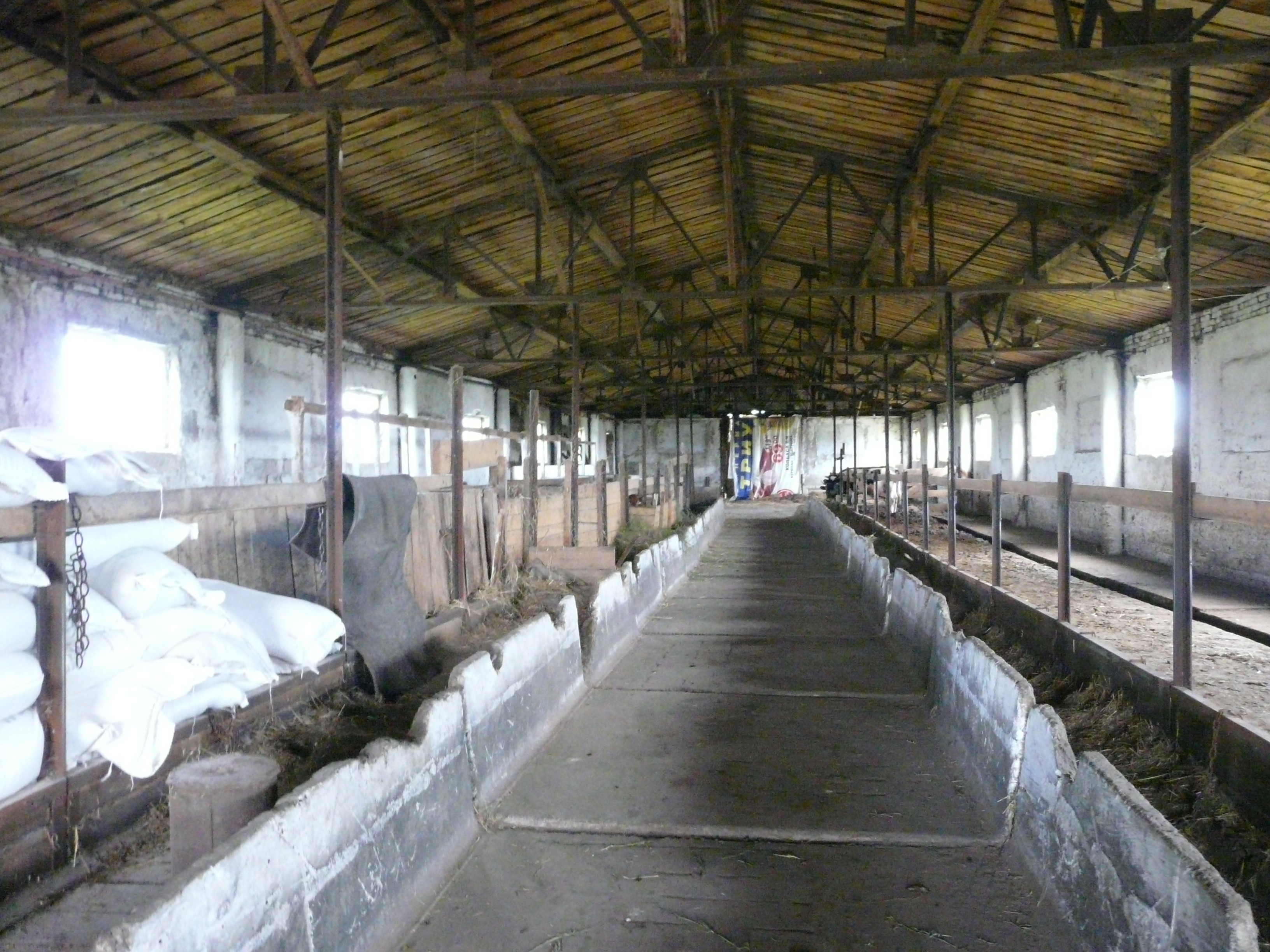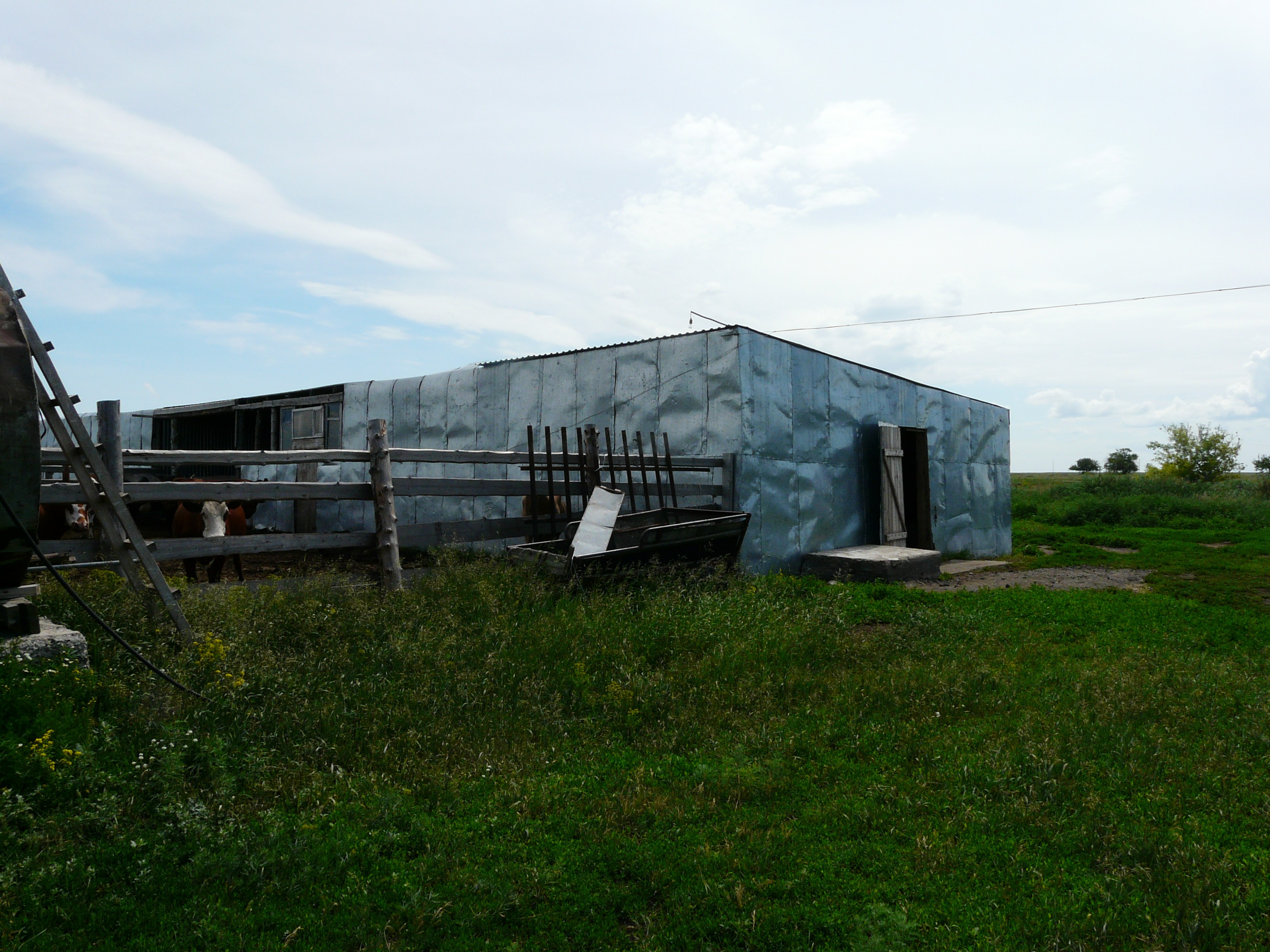 Михаил показал территорию – на участке в 2,2 га семьёй уже построены два капитальных помещения 12х50 метров. Один из них занят под сарай для зимнего содержания, в нём пластиковые окна и бетонные плиты на полу. В другом помещении – склад для посыпки. Рядом находятся откормочная площадка для молодняка и выгула коров, отдельный - для лошадей.