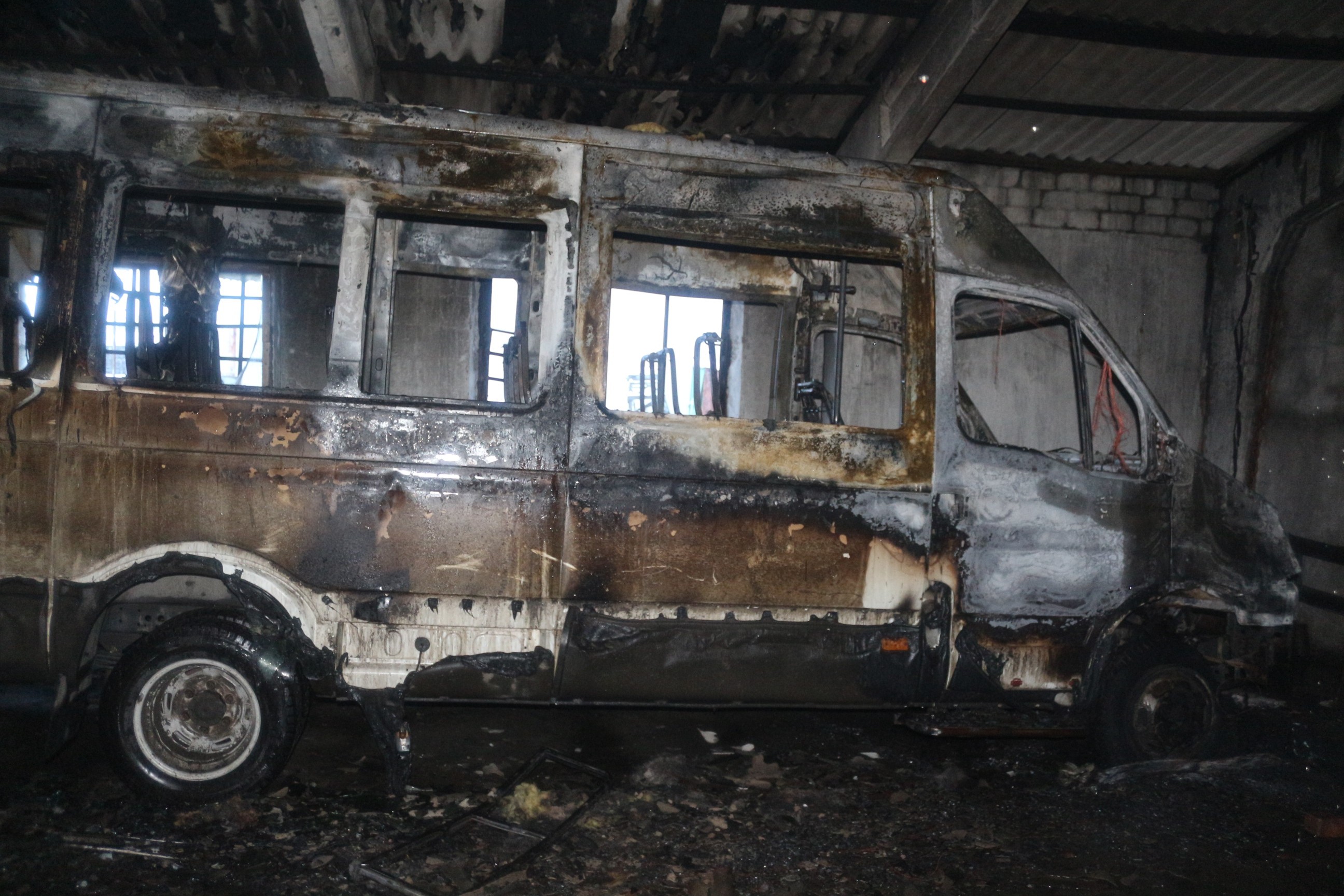 На момент пожара в гараже было ещё три автобуса, один из «ПАЗов» повреждён примерно на 50%, у ещё одного «ПАЗа» и «Соболя» оплавлены наружные пластиковые детали.
