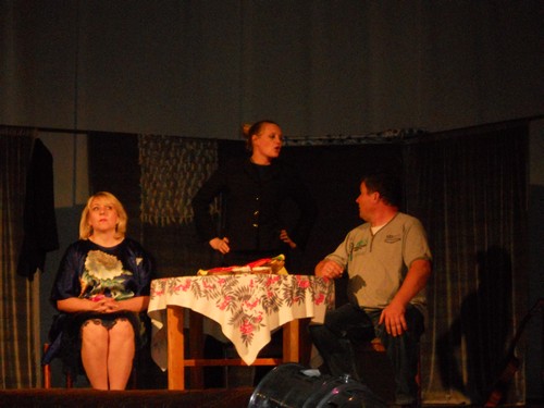 Одесский народный театр порадовал зрителей новой премьерой. Пьеса известного омского режиссера Александра Чернухи, написанная по мотивам рассказа А. Кузнецовой «Перина», была поставлена самим автором в течение примерно двух месяцев. И, как признался режиссер во время премьеры, спектакль уже живет своей жизнью…