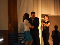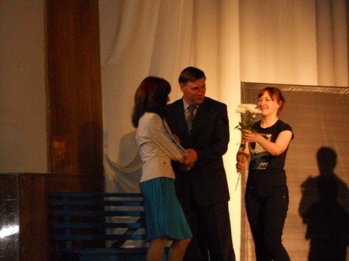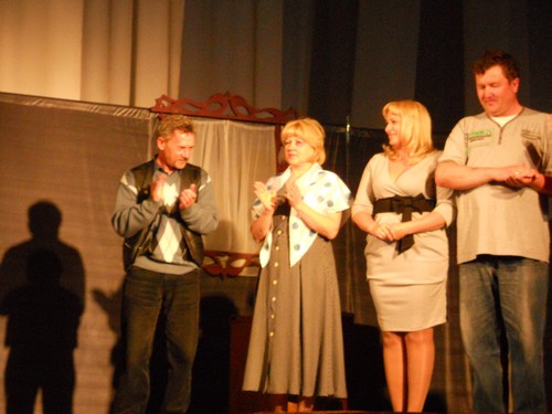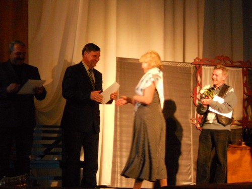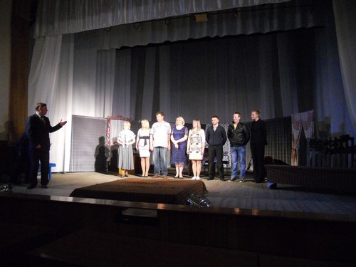 После премьеры режиссера А. Чернуху, самодеятельных артистов и постановочную группу, в том числе художника и светооформителя Валентину Мильцеву, звукорежиссеров Дениса и Максима Стариковых, поблагодарил глава района В.Н. Корнейчик и начальник Управления культуры С.А. Вишневский, вручив им благодарственные письма и сувениры. Кстати, Одесский народный театр 1 июня показывал спектакль на областном фестивале «Театральная весна» в Колосовке, был высоко оценен жюри, и из 19-ти любительских театров оказался на шестом месте.