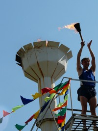 Чести поднять флаг спартакиады были удостоены наши прославленные волейболистки: Вика Журавлева, Жанара Дюсембаева, футболист Евгений Самойлов и борец Роман Штеле. Зажгли огонь спортивного праздника наши легкоатлеты: Вячеслав Кистерко, Зоя Климанова, Бахыт Куандыкова.