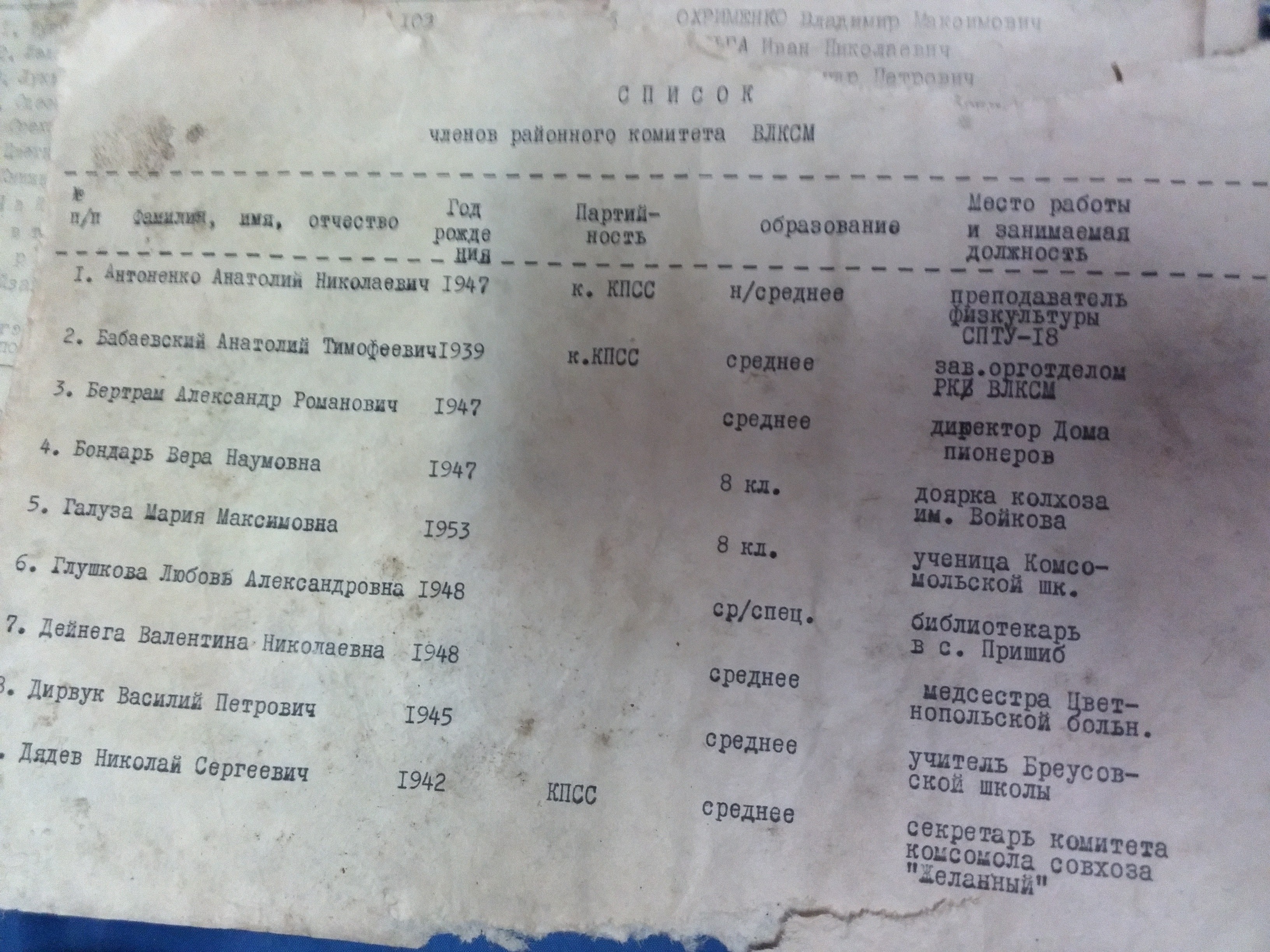 труженики. А люди у нас замечательные! Тысячи из них награждены высокими правительственными наградами за самоотверженный труд в годы войны и мирного строительства. А такие, как комбайнеры Павел Васильевич Кальницкий, Николай Павлович Шарыгин, звеньевая Татьяна Дорофеевна Василевская, председатель колхоза Александр Степанович Швыммер, директор совхоза (Борис?) Владимирович Яворский, доярка Любовь Павловна Смирнова удостоены высокого звания Героев Социалистического Труда. Это гордость всего нашего района.