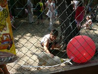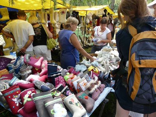 Как обычно, возле центрального входа вереницей выстроились автомобили, и искать стоянку пришлось чуть ли не за километр, хотя организаторы и приготовили специальное место, но в зарослях деревьев его заметить было непросто. Почти у входа внимание посетителей привлекли необычные звуки - это концерт давали тувинцы. Конечно, много простора для деятельности было у предприятий общепита - кафе на свежем воздухе с шашлыками, горячим пловом, столиками и напитками встречались на каждом шагу. В огромной палатке перед посетителями предстали изделия из омского льна в ассортименте: вата, веревки, изделия из валяной шерсти и многое другое. Хотелось все рассмотреть, но духота и пышущий жаром потолок из полимерного материала буквально выталкивали на свежий воздух. Идя по аллее, зацепилась взглядом за фонтан - здесь представляли новинки ландшафтного дизайна: ковры газонных трав, модные растения и особенно журчащая вода в рукотворном пруду привлекали внимание посетителей. Чувствовалась коммерциализация выставки: даже у этого прудика сфотографироваться можно было, только заплатив деньги. Вообще сборы на этой ярмарке с посетителей не брал только ленивый: хочешь забраться на лошадь - 100 рублей, хочешь подержать в руках кролика - гони еще сотню! Правду сказать, "за поглазеть" денег не брали и на вопросы отвечали бесплатно, но все же после посещения выставки мой кошелек немного опустел - не удержалась и купила сиреневую уличную гортензию: продавец утверждала, что весной ее будут продавать за 1000 рублей, а сегодня на "АгроОмске" кустарник стоил в три раза дешевле. Теперь буду переживать, перенесет ли она зиму. Так хочется, чтобы об этом красочном празднике сохранилось что-то на память.