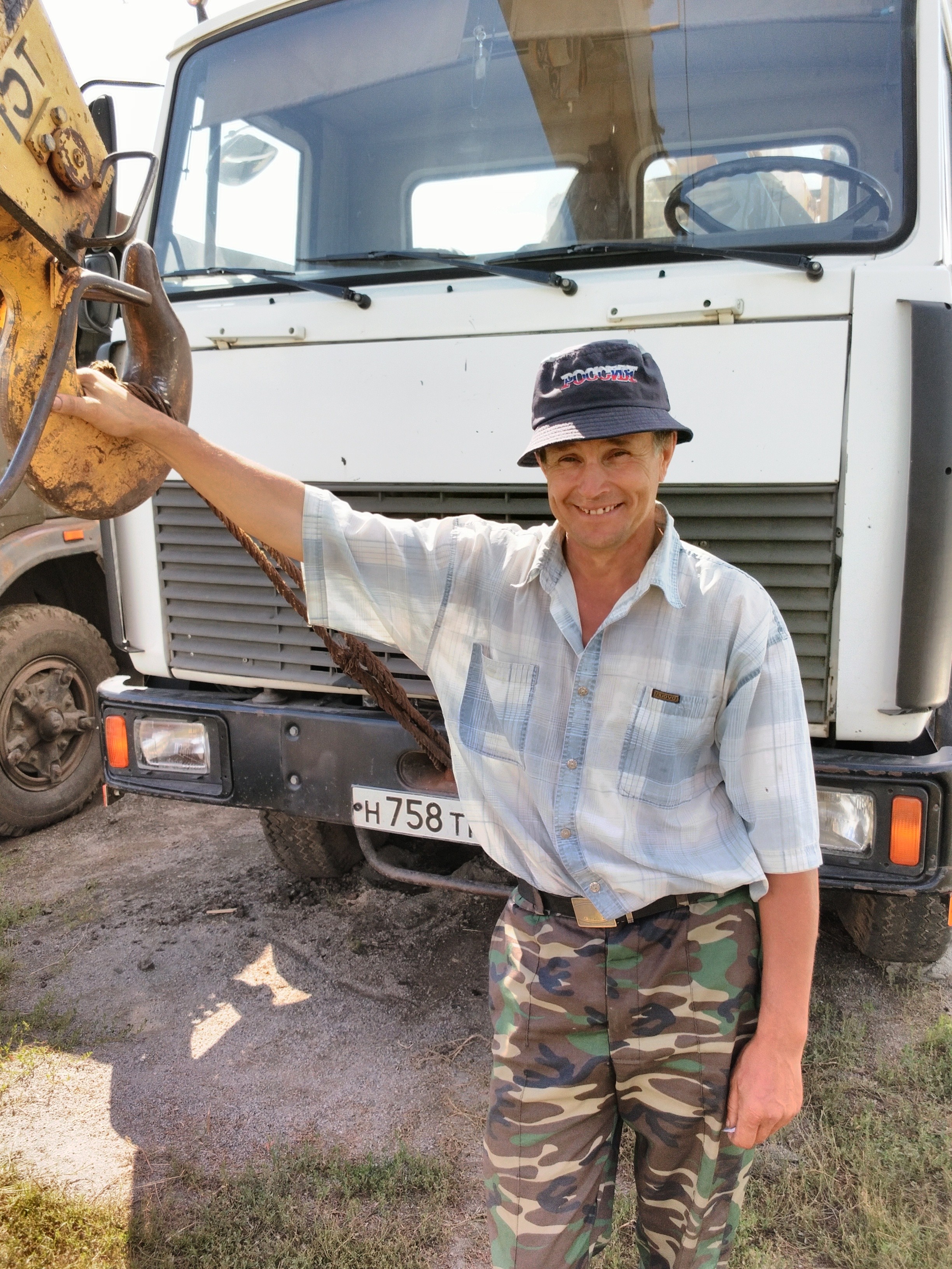 Своего героя нахожу не без труда - территория ИП «Демченко», где он работает, большая, а Виктор Николаевич, оказывается, сидит в кабине крана-манипулятора. Отмечаю, что машина интересная, как говорится, два в одном - и грузовик, и кран. Виктор Николаевич смеётся: