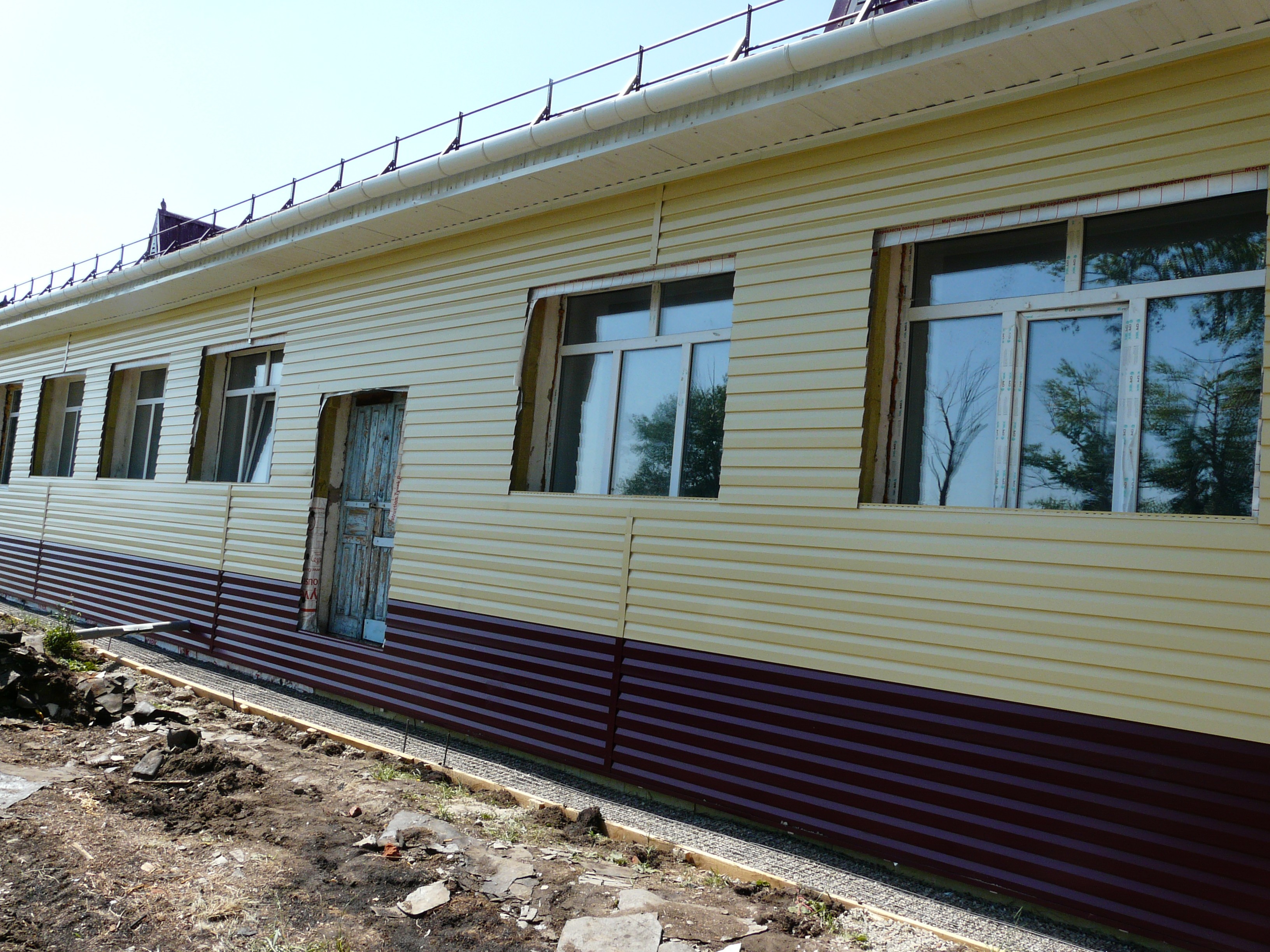 Тем не менее, крупные, самые затратные виды строители выполнили: кровля установлена новая, стены утеплены и обшиты, да и пластиковые окна, несомненно, и вид зданию современный придают, и тепло держать будут.