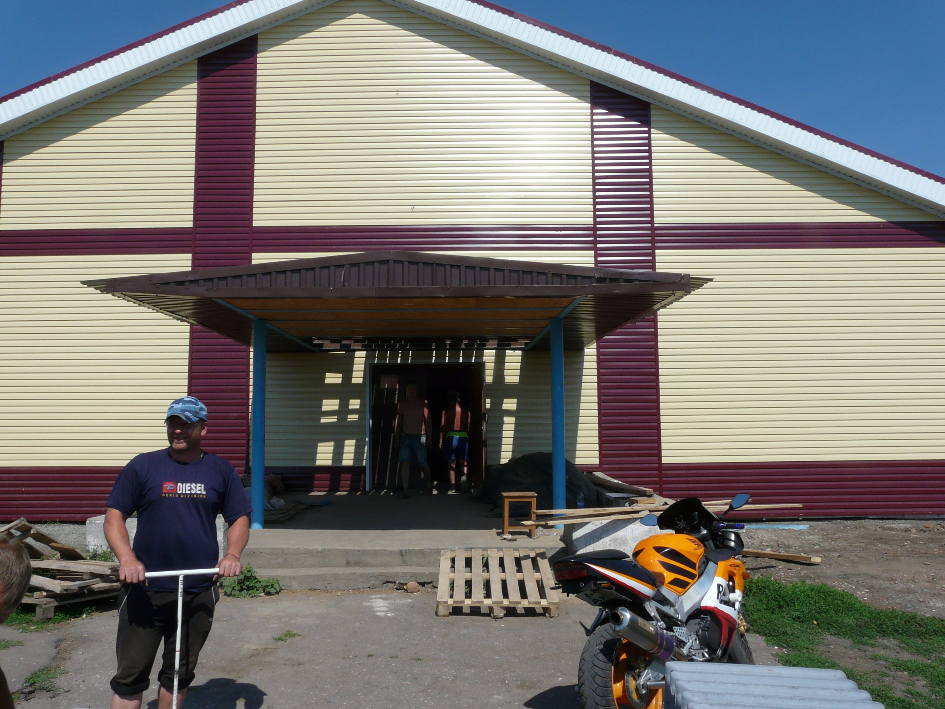 Жители жаловались, что строительным хламом всё завалено, и к учреждению не подойдёшь, но это уже не соответствует действительности. На день нашего приезда, 13 июля, возле здания фактически оставались только две кучи кусков старого рубероида. Строители наметили отмостку по периметру всего здания, осталось бетоном залить. Затем, по словам прораба Владимира, ещё установят водостоки на крышу, навесят радиаторы, запустят отопление, доделают откосы на окнах…