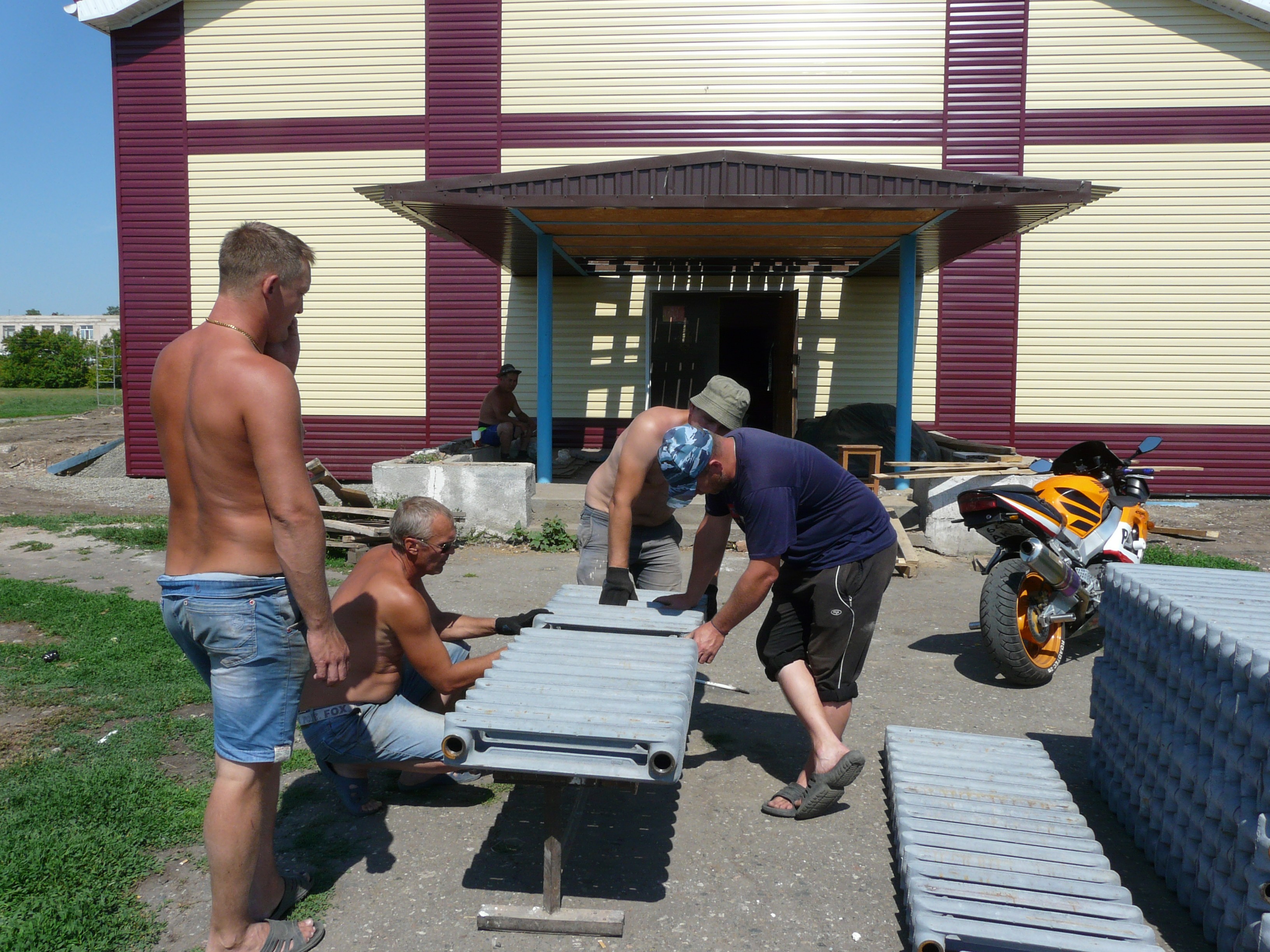 Они как раз начинали свинчивать радиаторы отопления, готовя их к монтажу. Свою каплю дёгтя подрядчики сегодня заведующей учреждением Е.В. Шефер преподнесли в нашем присутствии: считают, что тепла в здании всё равно не будет, потому что горячая вода из котельной подаётся в первую очередь в школу, а потом уже сюда – в досуговое учреждение, и труба полиэтиленовая тепло держать не сможет, тем более, что изоляция утеплителя на уличных трубах, идущих поверху, уже вся истрепалась. Но этот вопрос оставим для комментария специалистам.