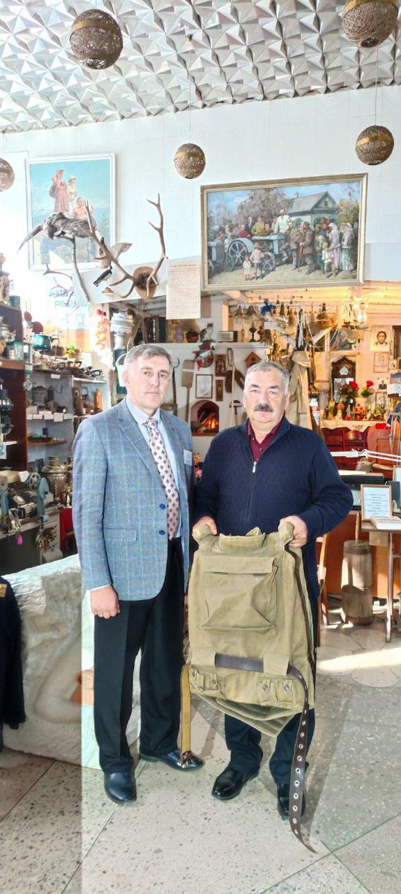 С приятной миссии начал свой рабочий день председатель Желанновской участковой комиссии Одесского района N1272 Денис Иосифович Колищак. Он преподнёс заведующему музея А. И. Лонскому в дар армейский бронежилет примерно 1980-го года. избирательные участки, как и музей, сейчас располагаются в Центре культуры и досуга, вот и получилось совместить приятное дело с событием регионального масштаба.