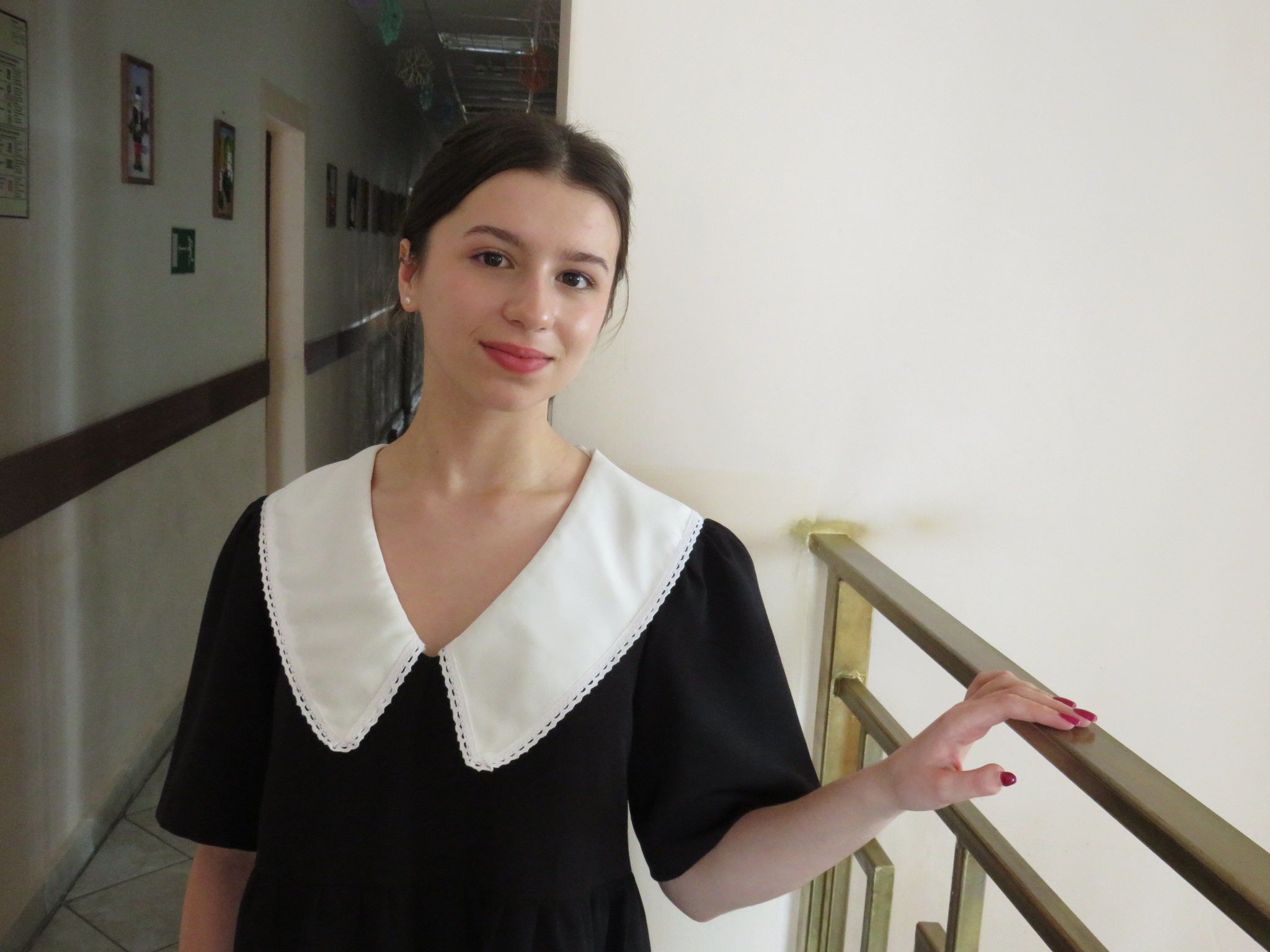 Мария Мирошниченко – девушка с большим багажом знаний и умений, активно участвует в общественной жизни школы и села в объединении «Содружество», мечтает быть педагогом - учить детей начальных классов в Одесском. И твёрдо идёт к своей мечте – посещает занятия и мероприятия педкласса. Вместе с педагогом участвовала в региональном конкурсе. Маша умеет раскрыть лучшие качества тех, кто рядом, что продемонстрировала во время тренинга в одном из конкурсов. Мария успешно применяет современные методики, вот и членам жюри раздала кюар-коды для заполнения анкеты.